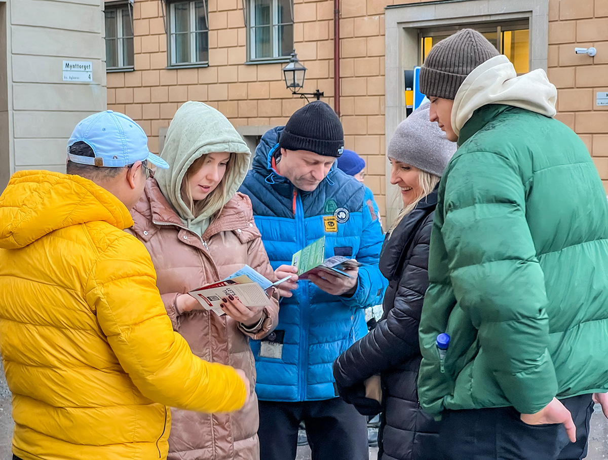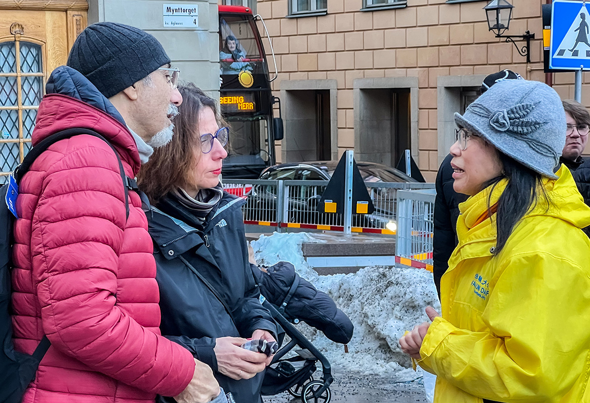 【明慧网二零二四年一月二日】(明慧记者何平斯德哥尔摩报道)二零二三年十二月二十九、三十日下午,瑞典法轮功学员在首都斯德哥尔摩皇宫旁的钱币广场举办了反迫害征签活动,向人们介绍法轮功、揭露中共迫害法轮功的事实真相。很多民众纷纷签名支持,有市民还表示:面对如此邪恶,人最不应该做的事就是沉默。
