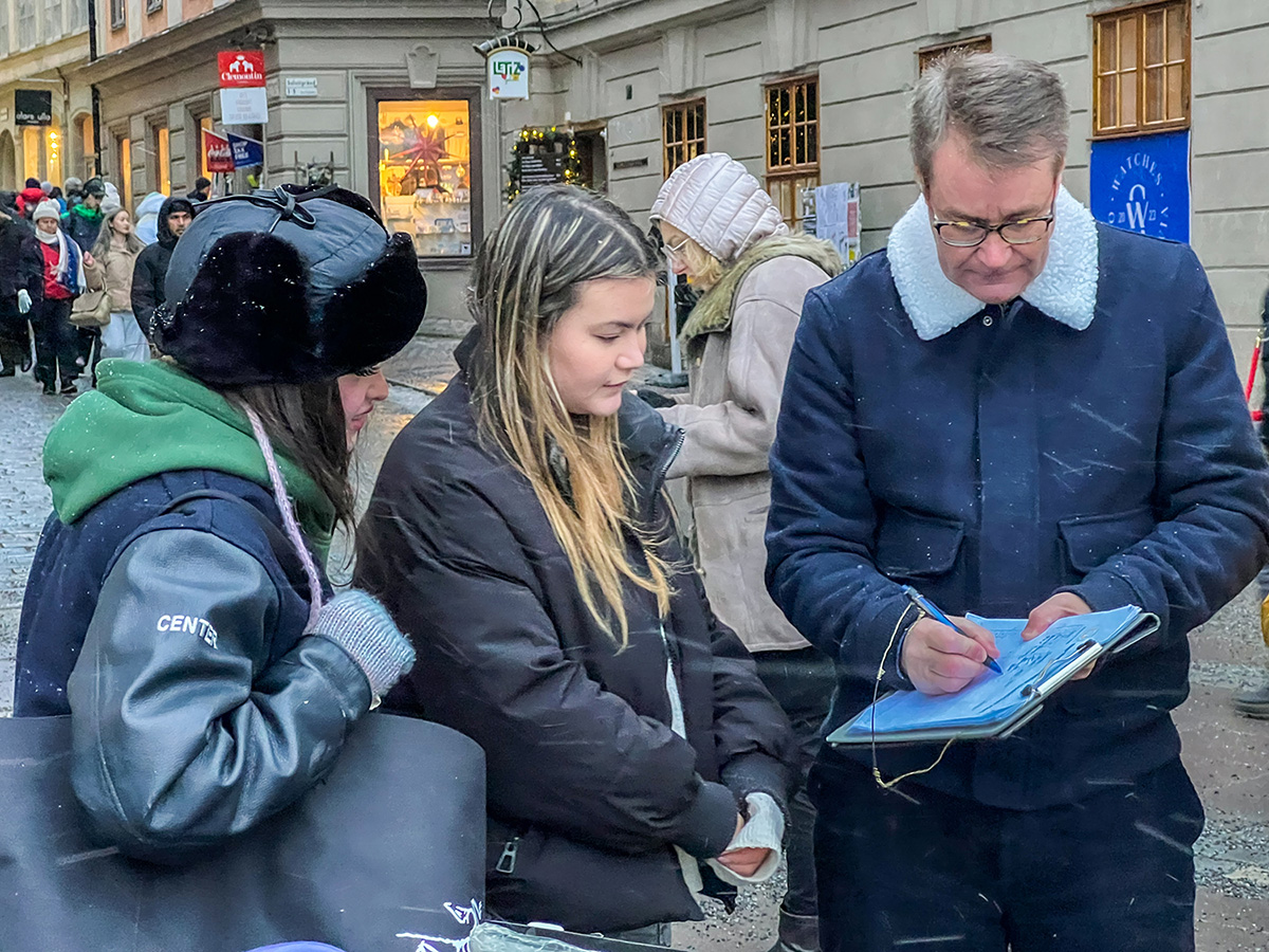 人群中一对瑞典夫妇仔细阅读真相展板后,就主动上前签了字。其中的那位先生介绍自己是一位教师,在斯市的一所学校里承担社会学的教学工作。他说:“对于共产主义的邪恶,我了解一些,现在课堂上讲的是越来越多,其目的就是要把共产主义的罪恶告诉给学生们。”