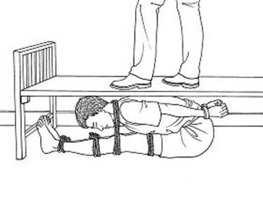 ![]() 酷刑演示:梯子捆绑(“抻筋”) |