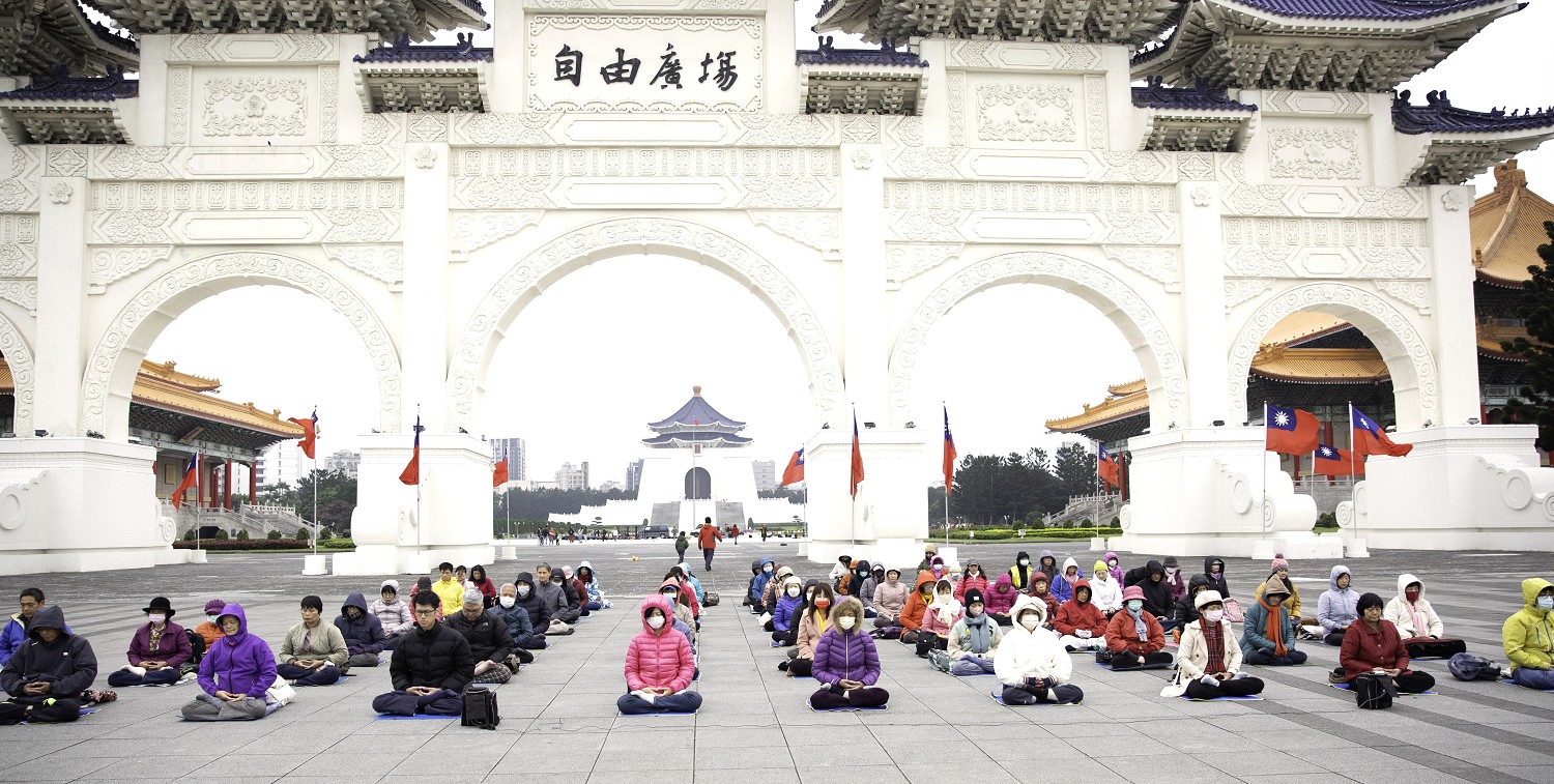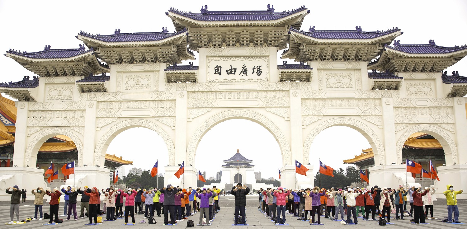 ![]() 图1~3:二零二四年一月一日元旦,台北部分法轮功学员在自由广场举行集体炼功。 |