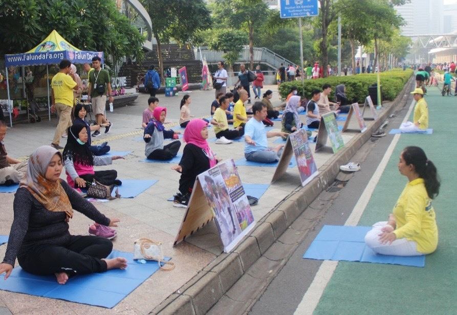 一名雅加达市民丽塔(Rita)表示这是她第一次参加法轮功学员的集体炼功。她说:“之前我以为这是已经注册报名的会员才能够参加的炼功活动,原来这活动是对外开放的,我深深地被吸引并且想要学习。”