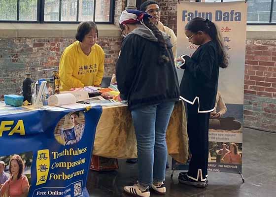 - 罗德岛历史文化节 民众现场学炼法轮功- 美国罗德岛州部份法轮功学员九月二十一日在普罗维登斯水火艺术中心,参加了第四十六届罗德岛历史文化节。