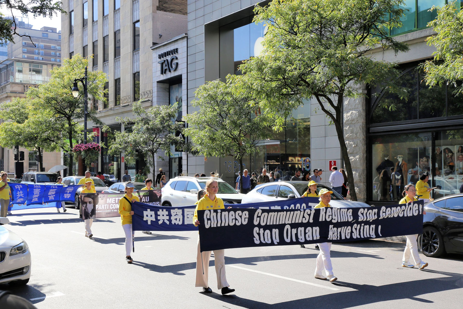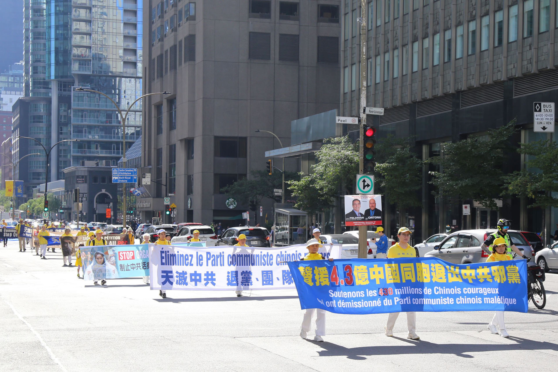 【明慧网二零二四年十月一日】二零二四年九月二十八日,加拿大魁北克部分法轮功学员在蒙特利尔举行游行集会,声援逾4.3亿中国人退出中共的党、团、队组织,同时呼吁各界共同制止中共迫害。游行队伍传递的信息,引起沿途民众的共鸣。有的人很高兴,要和中国人一起庆祝;他表示,这种和平的方式,是抗议暴政的榜样,祝愿“这样的努力继续下去”。