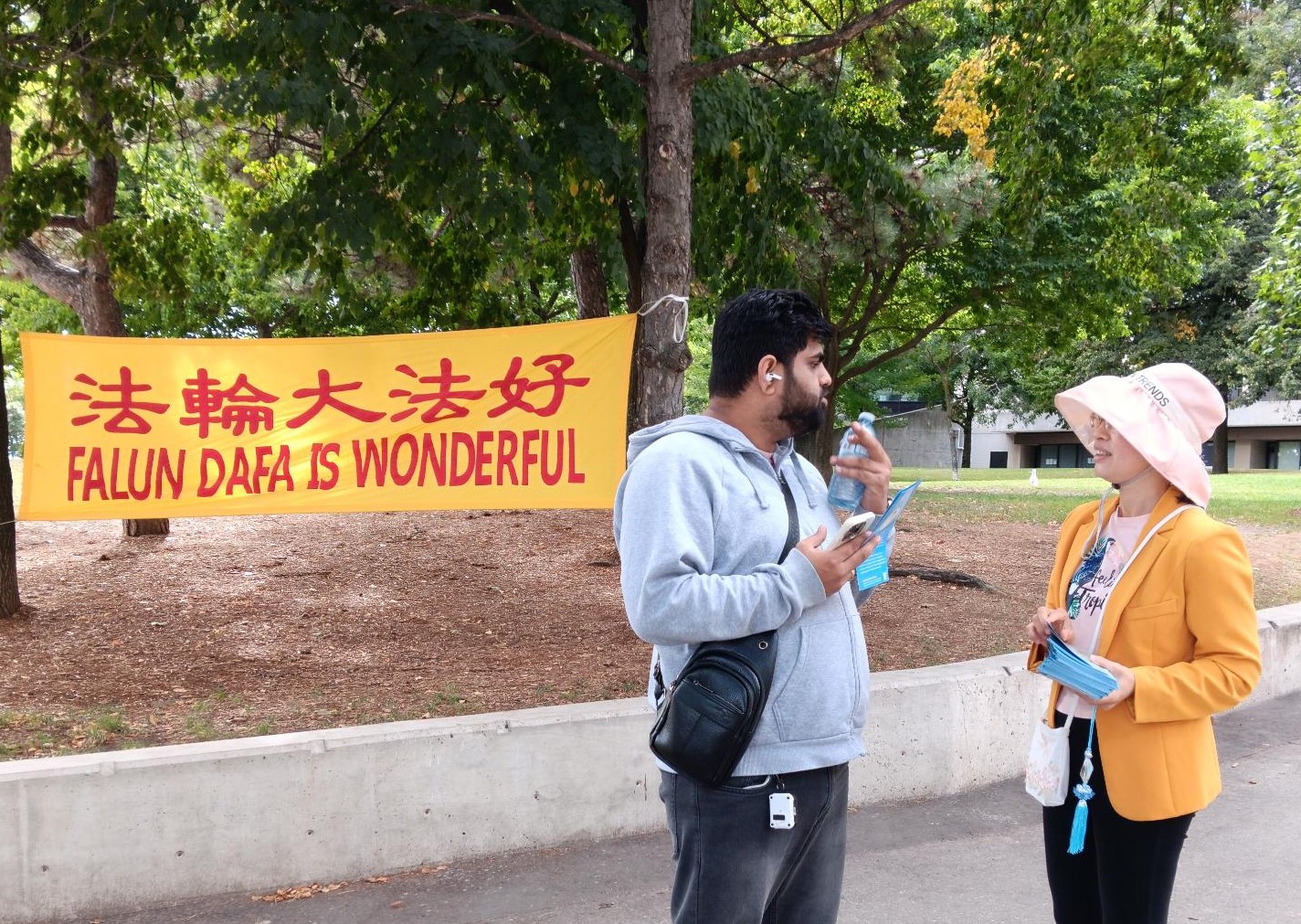 布雷坦尼亚回忆,不久前曾在公园跟法轮功学员一起炼过功,她说:“(炼功)是一个很棒的体验,我感受到了平和。感觉这是我一直在寻找的东西。”她还表示,自己刚来加拿大,还没有广泛的社交圈,学员们的言行让她有归属感,“就象是告诉我:‘欢迎加入’。”