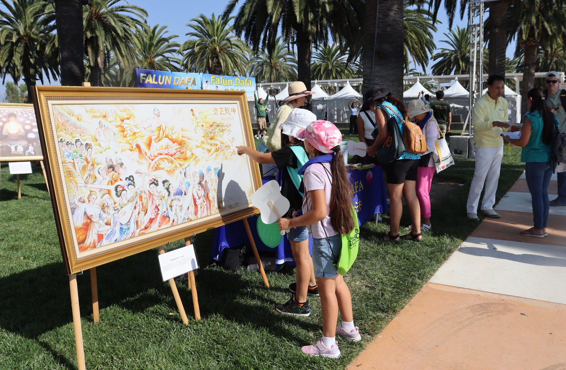 ![]() 图2~6:法轮大法展位与“真善忍美展”,吸引了前来尔湾地球村节的众多居民。 |