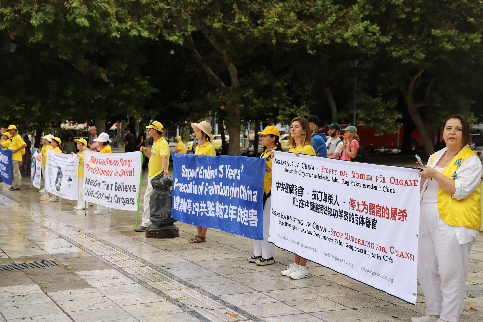 反强摘器官医生组织(DAFOH)的驻希腊代表艾菲·加纳(Effie Gana)女士在集会上发言时,首先引用了联合国《防止及惩治灭绝种族罪公约(1948)》的条款:“灭绝种族系指蓄意全部或局部消灭某一民族、人种、种族或宗教团体。”