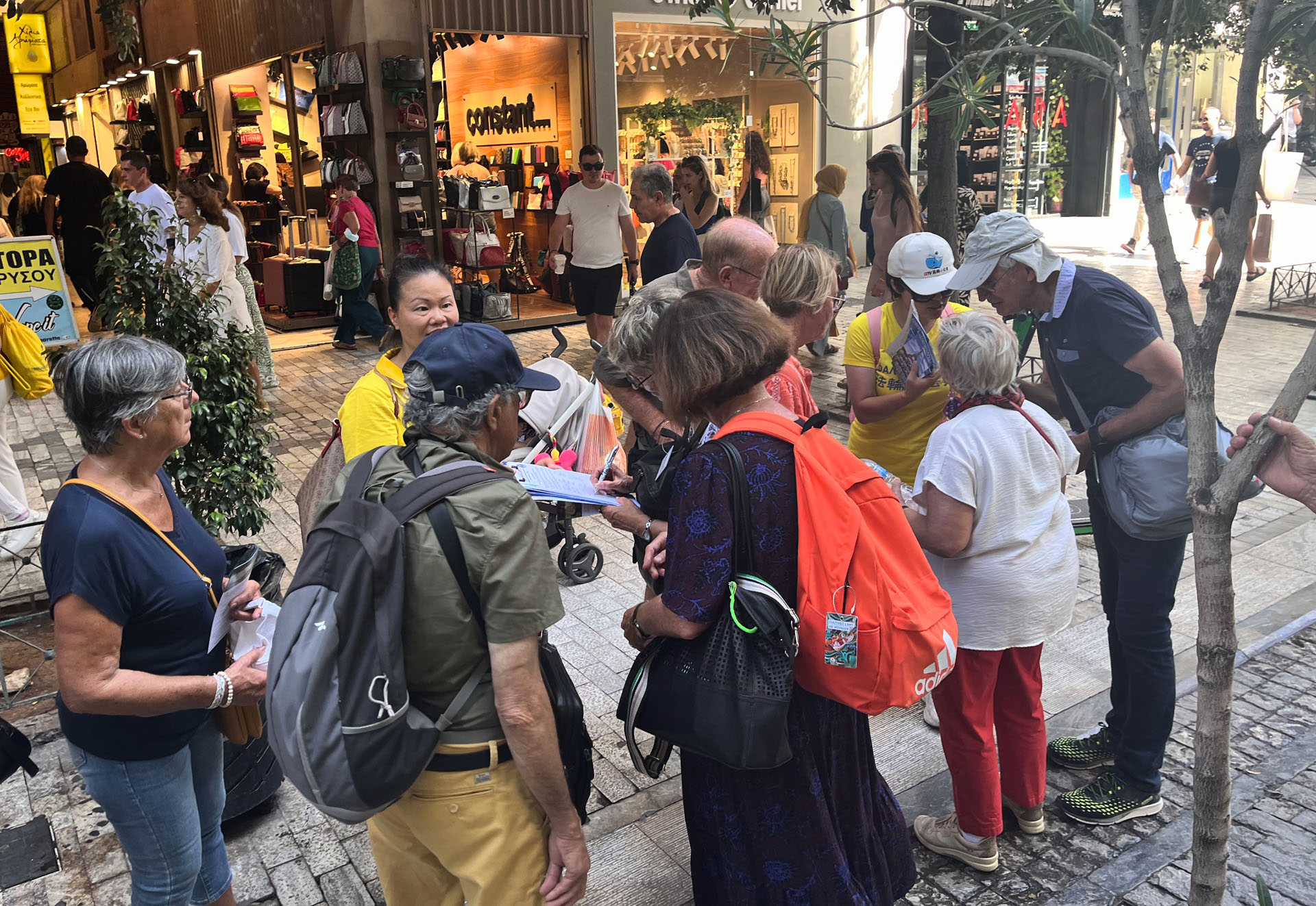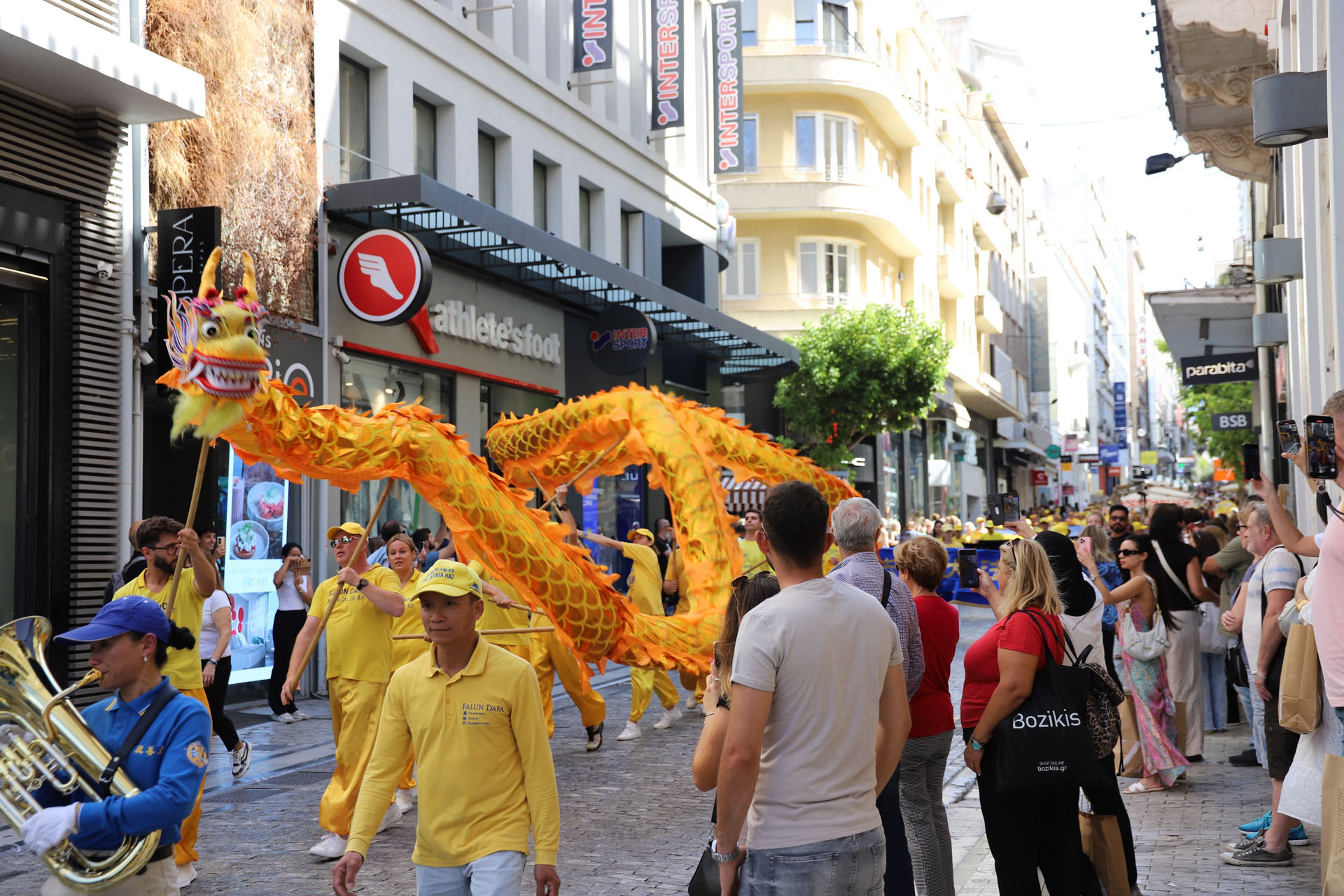 ![]() 图1:二零二四年十月四日和五日,欧洲多国法轮功学员在希腊雅典举行和平反迫害游行。图为游行队伍穿过购物街。 |