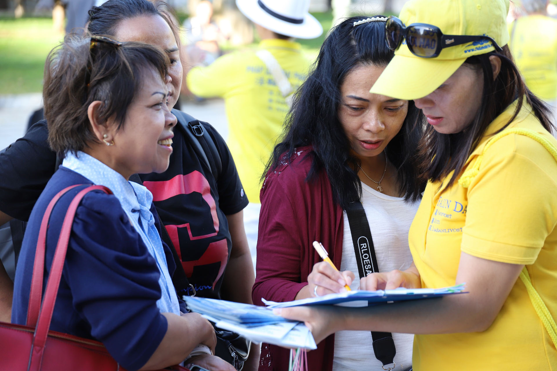 茱莉雅说:“到处可以看到行人接了传单,在路边仔细阅读。有人发现不懂传单上的语言,就追着学员要自己语种的传单。很多人主动要法轮功的传单。”
