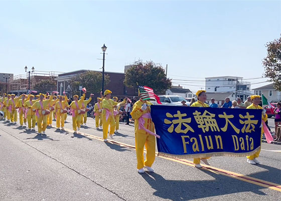 - 美国新泽西哥伦布尔日游行 法轮功队伍受欢迎- 十月十三日,美国新泽西州海滨高地镇举办了第三十三 届海洋县哥伦布尔日游行。纽约法轮功腰鼓队和莲花队应邀参加了游行,受到现场观众的热烈欢迎。