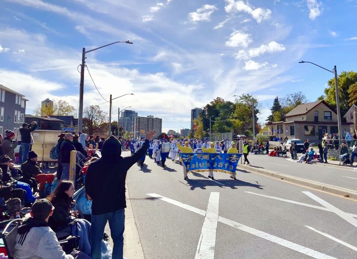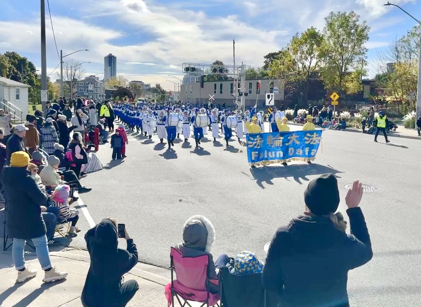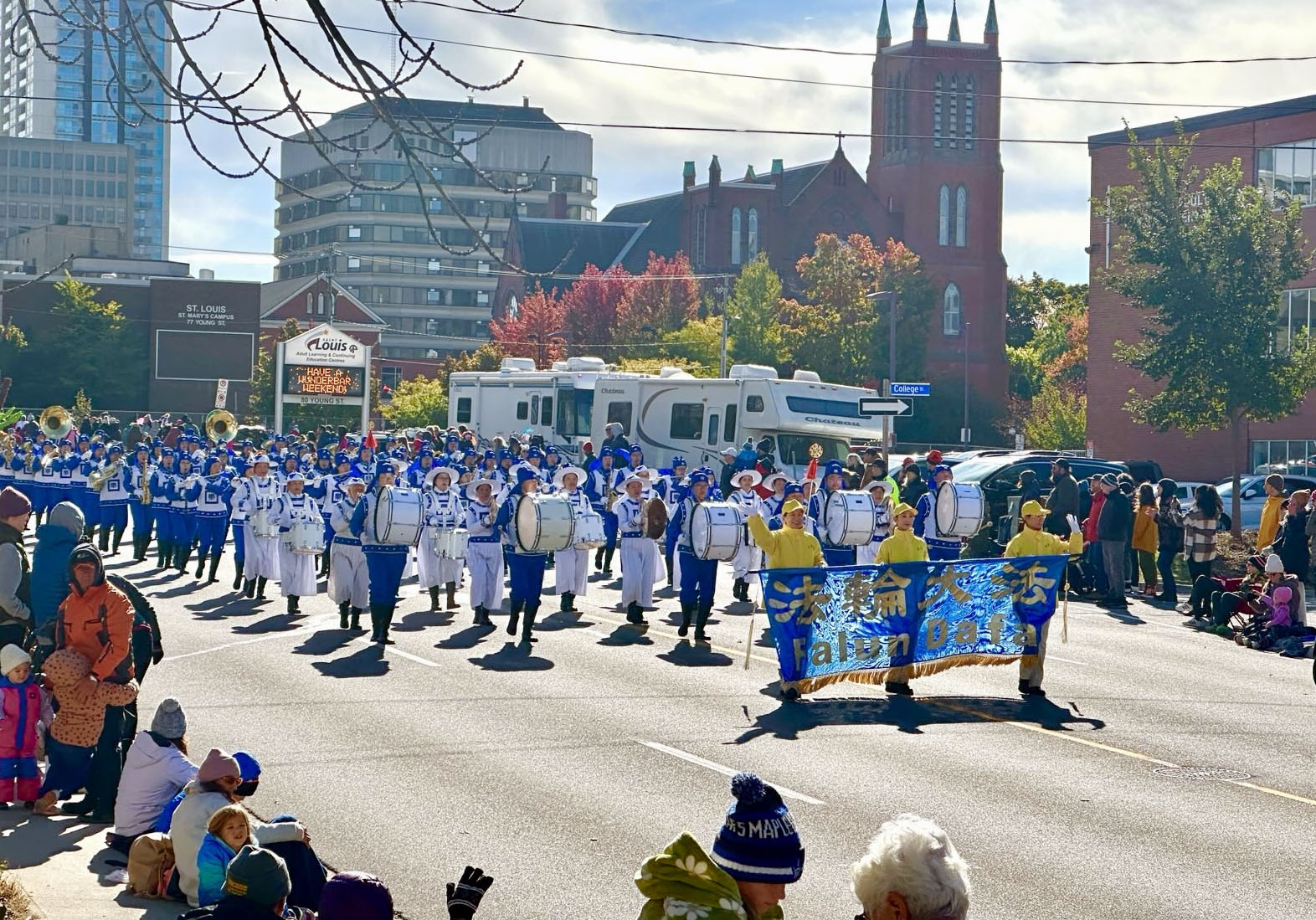 图1~3:多伦多法轮大法天国乐团参加感恩节游行,当地CTV电视台转播。