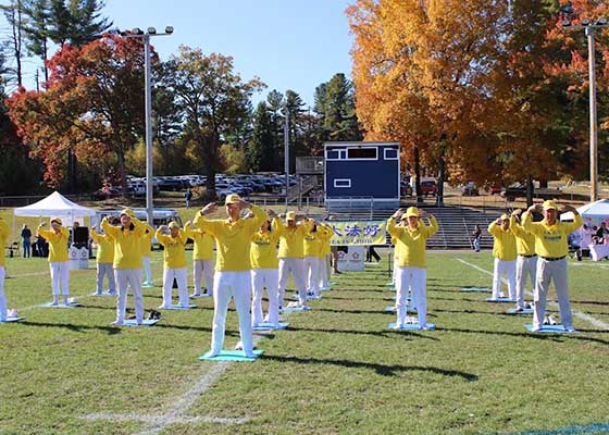 十月十九日,美国麻州部分法轮功学员参加了位于西博伊斯顿镇的秋季节活动,展示了优美的法轮功五套功法,并设置展位介绍法轮功。