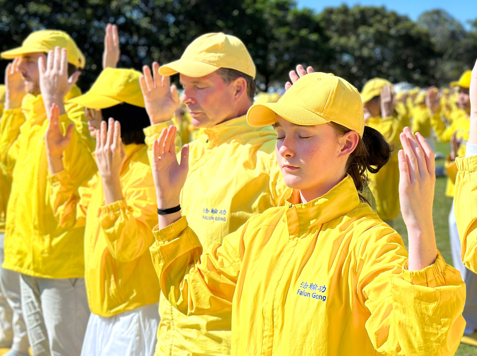 ![]() 图3~7:二零二四年十月二十六日,在悉尼市中心的银禧水滨公园(Jubilee Park),来自澳洲各地的法轮功学员举行了排字、炼功活动。图为各族裔学员在炼法轮功五套功法。 |