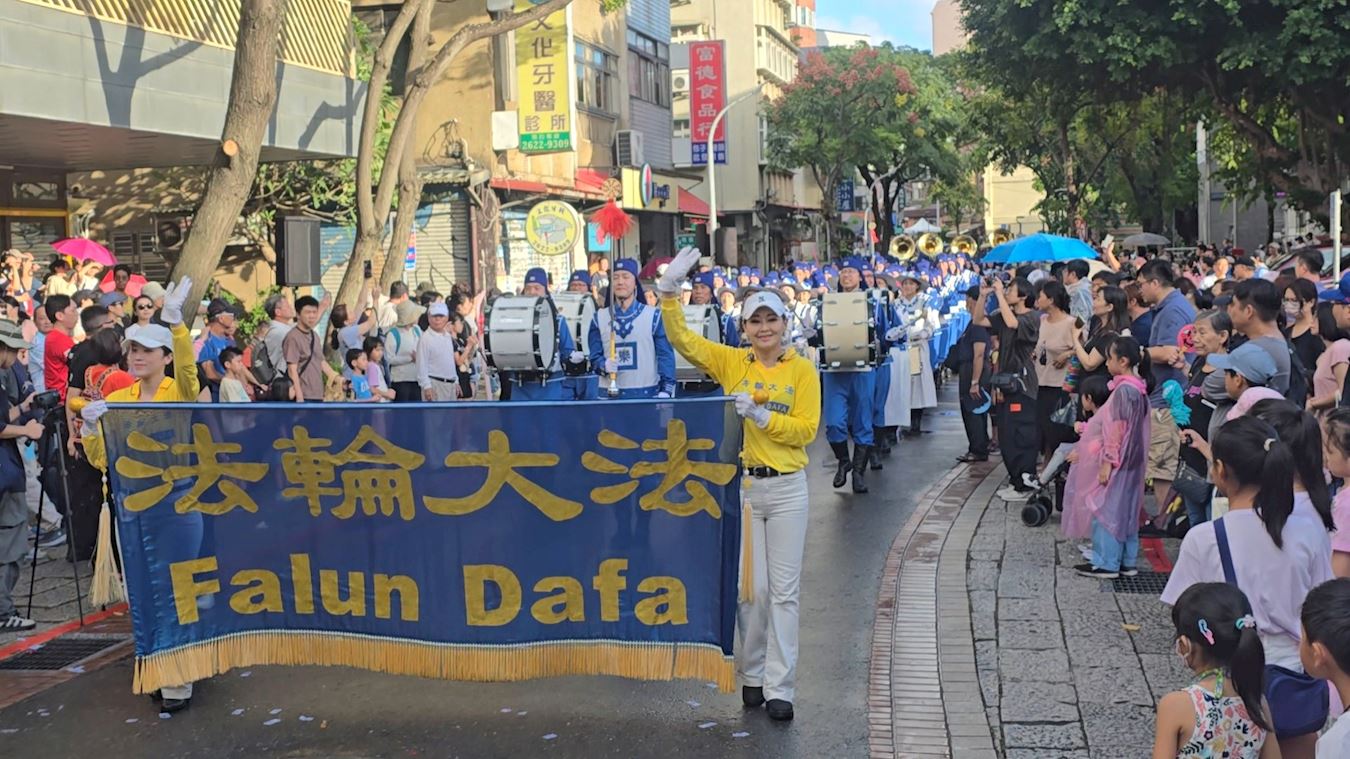 今年的活动主要是纪念一八八四年中法战争的“西仔反沪尾之役”,这是十九世纪末年清朝难得打赢的一场战事。天国乐团在队伍压轴的“凯旋战歌”方阵中,演奏包括《法轮大法好》、《神圣的歌》、《法鼓法号镇十方》、《送宝》、《凯旋》等乐曲。