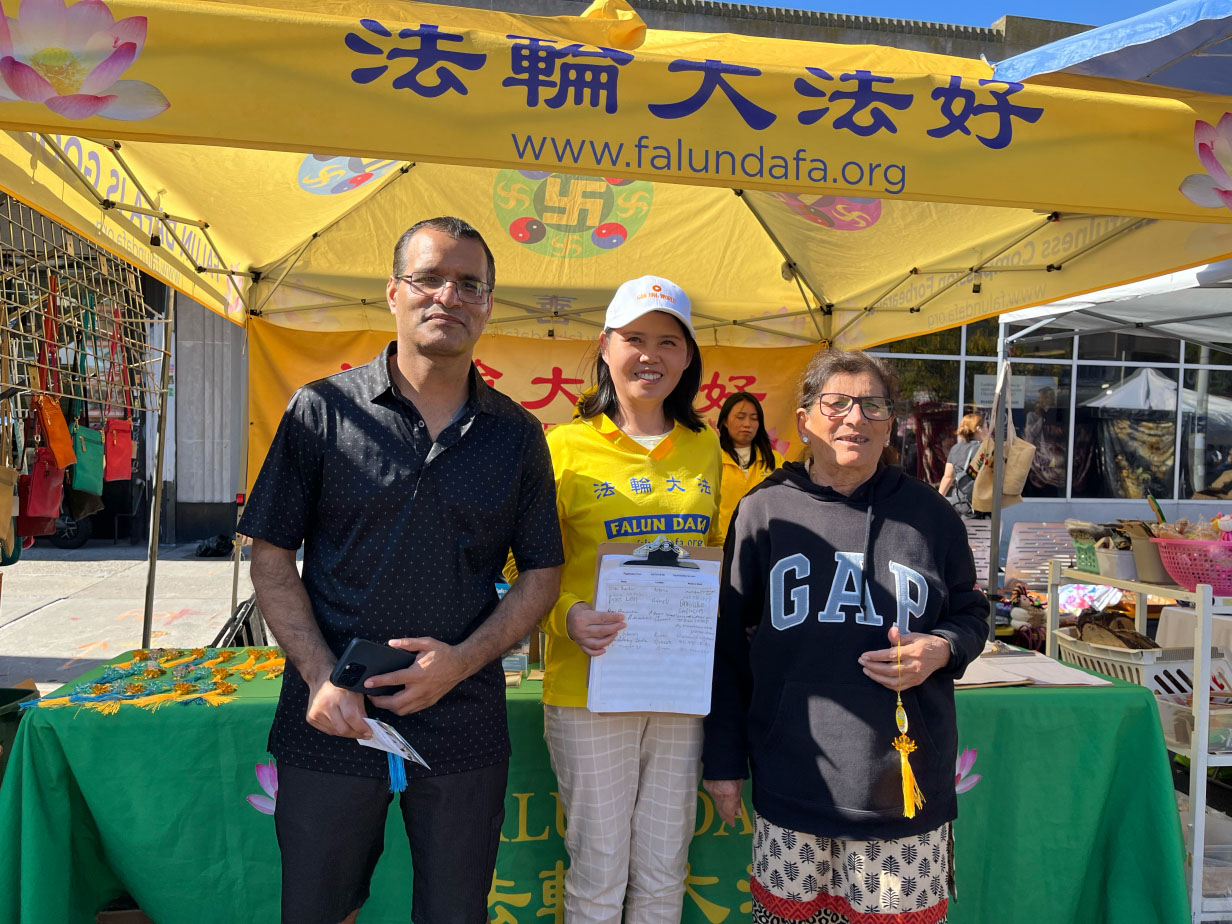 从小就来到美国的苏珊(Susan Xu)女士,她静静地在展位前思考并观察着学员,这时法轮功学员面带微笑,真诚友好地上前与她交流。她问:“在中国是不是真的有监狱、洗脑班、劳教营关押着法轮功修炼者?他们是不是真的遭受了那么多的迫害?”学员说:“我就是曾经在中国被非法关押了几次,流离失所,最后辗转来到美国才拥有了自由的修炼环境。”