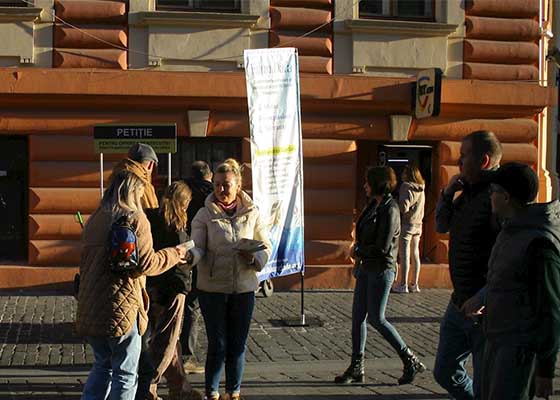 10月19日和26日,罗马尼亚法轮功学员来到布拉索夫的老城中心,向当地居民和游客分发真相资料,并在呼吁停止迫害的请愿书上征集签名。