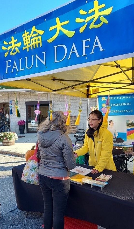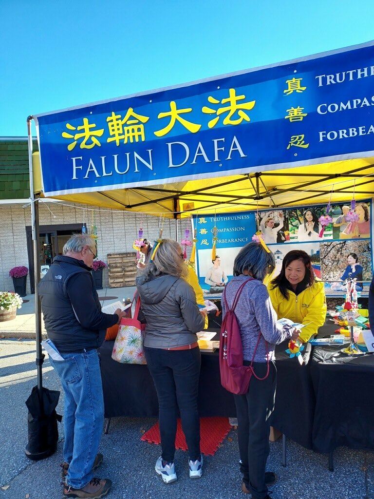 【明慧网二零二四年十一月一日】二零二四年十月二十六日,美国东北部新罕布什尔州拉科尼亚市(Laconia)举行一年一度的南瓜节庆活动。美国麻州和新罕布什尔州的部分法轮功学员参加了南瓜节活动并设置展位,向人们讲述法轮功真相并展示法轮大法五套功法。