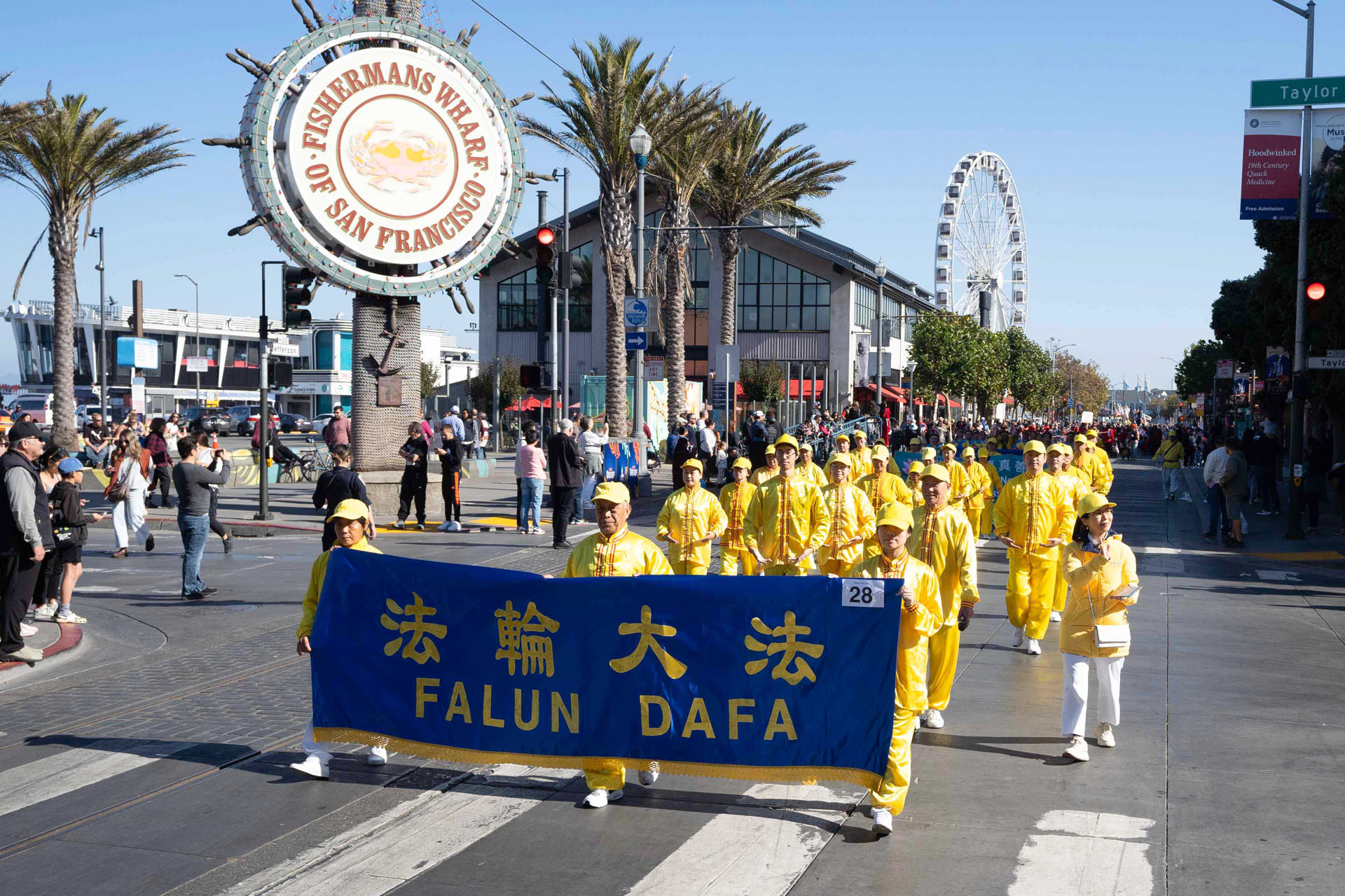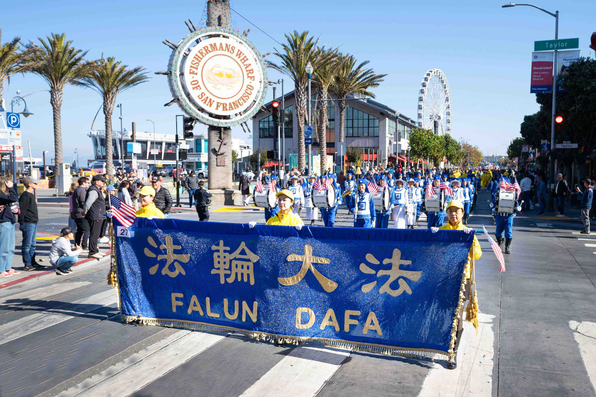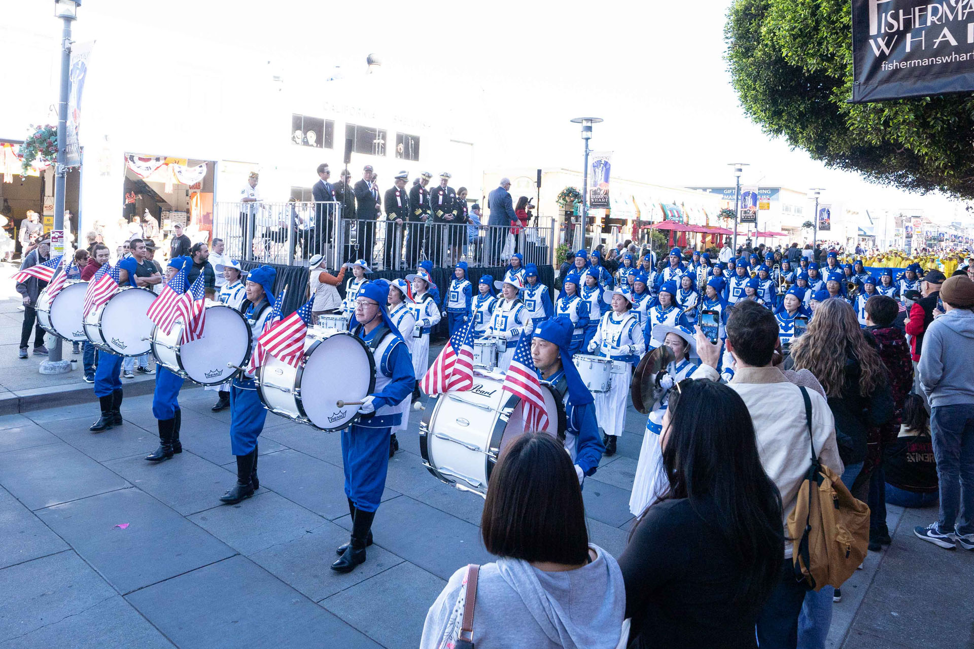 当天上午十一点,游行在风景秀丽的旧金山渔人码头附近举行,队伍从恩巴卡德罗大道(Embarcadero Blvd)出发,一直走向杰佛逊街。队伍除了美国的海军、陆军、空军,也有各式特色的乐队、旗队,有数万人参加游行。