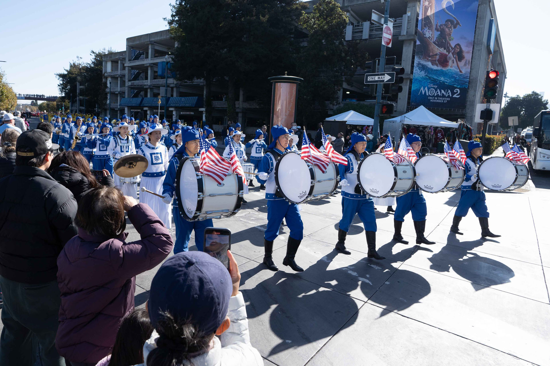 游行前,来自山谷泉市(Valley Springs)的卢卡斯(Lucas)看到法轮功学员排练的场面,驻足观看,“太棒了,太美了,真善忍是我们应该遵循的原理,我们应该遵循真善忍生活,我们现在缺少的就是这些。”
