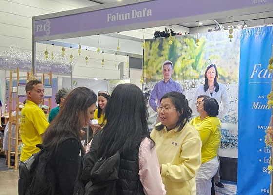 十一月十五日至十七日,在墨尔本会展中心举办的“身心灵健康节”上,法轮功展位吸引了很多观众驻足了解详情。