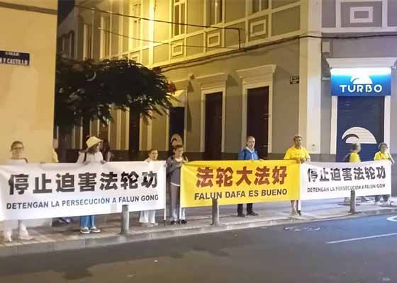 十一月十三日至十四日,中共党魁在飞往秘鲁出席APEC会议前夕,途经西班牙。法轮功学员分别前往习近平必经的高速公路及其下榻的宾馆前举行和平请愿,要求中共停止迫害法轮功。