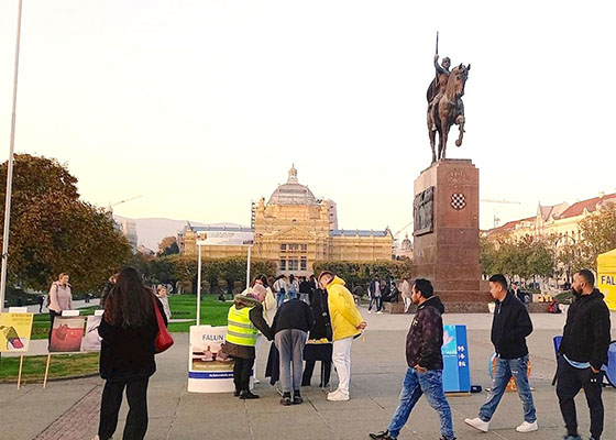 十一月二日,克罗地亚法轮功学员在首都萨格勒布的托米斯拉夫国王广场举办信息日活动。