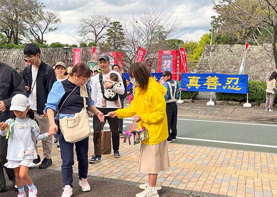 十一月一日至四日,来自日本静冈县和部分地区的法轮功学员来到大道艺世界杯的现场,向游客分发介绍法轮大法的资料。