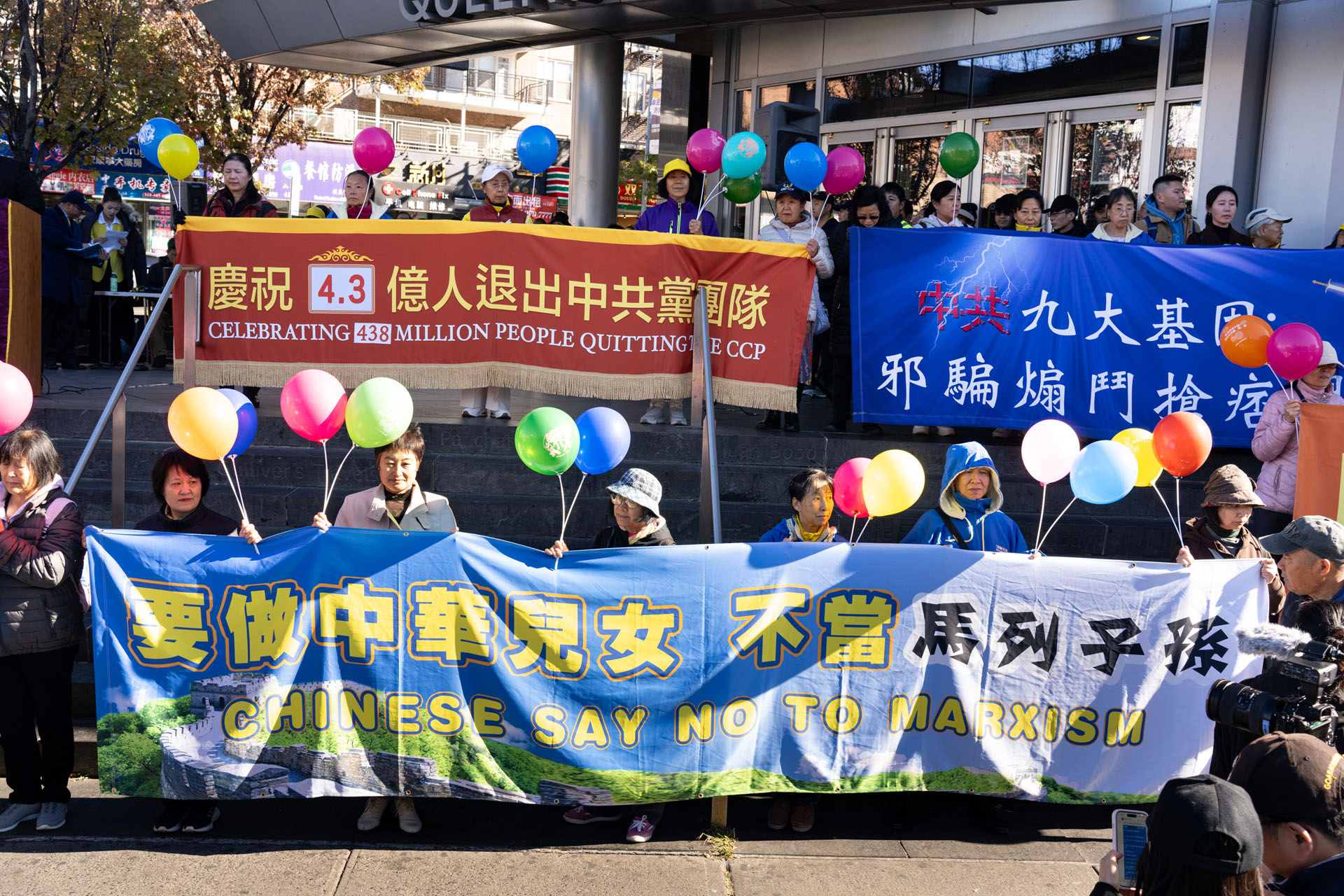 川流不息的路人看到了集会,他们拍照、录像,举起大拇指,甚至大声表达对中国共产党的摒弃,对退出中共的支持。有的华人在看完集会后,马上办理“三退”(退出中共党、团、队组织)手续;有的华人表示精神振奋;有的华人大声说:“我不做共产党的子民!”