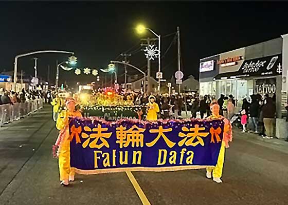 纽约长岛圣诞点灯游行 法轮功腰鼓队受欢迎