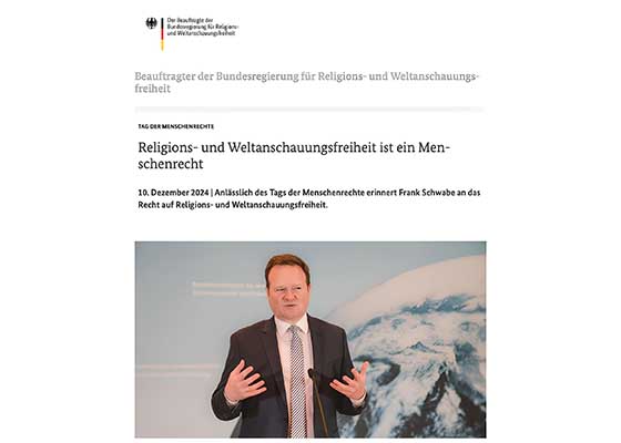 - 德政府宗教自由专员国际人权日发声 声援法轮功- 德国联邦政府宗教与信仰自由专员施瓦博先生在德国联邦政府网站和社交平台声明声援法轮功,并声援在中国仍然遭中共迫害的法轮功学员。