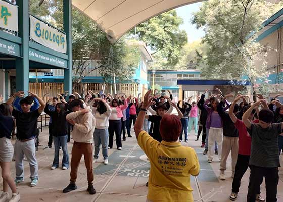 - 法轮功学员在墨西哥学校介绍法轮大法- 十一月七日,法轮功学员参加了由墨西哥国立自治大学经营的高中组织活动,他们向学校师生介绍了法轮大法的美好并免费教授法轮功,得到学生们的热烈反响。