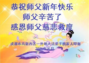 时光飞逝,转眼即到了2025年。晋城市在各行业工作的新得法的大法弟子们恭祝师尊元旦快乐!弟子们无比感恩师父的无量慈悲!必将不负使命,走好走正大法弟子的修炼之路。