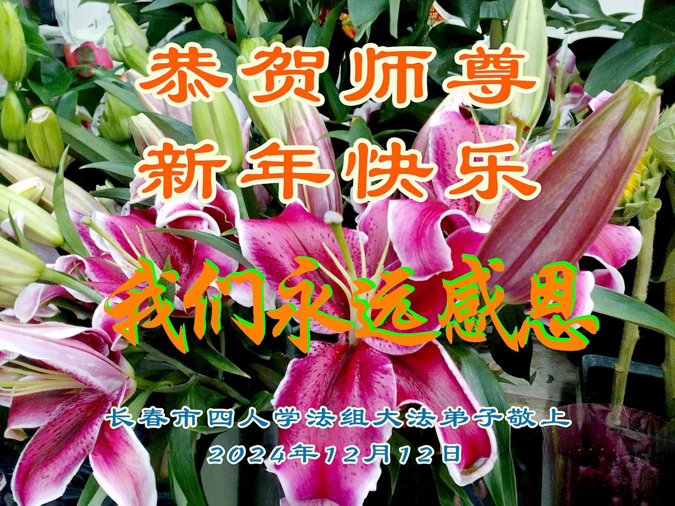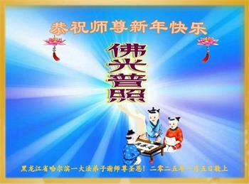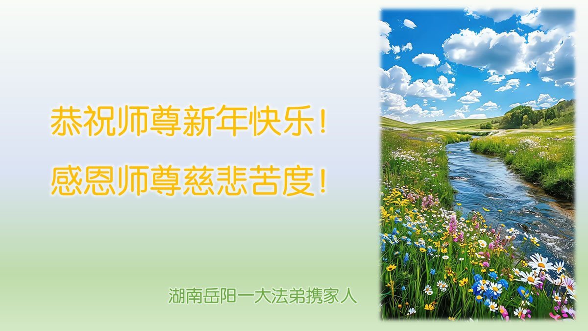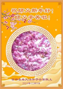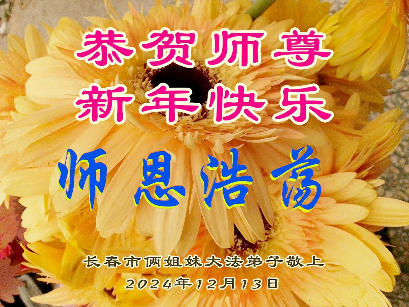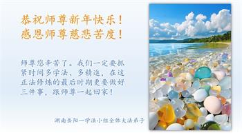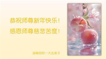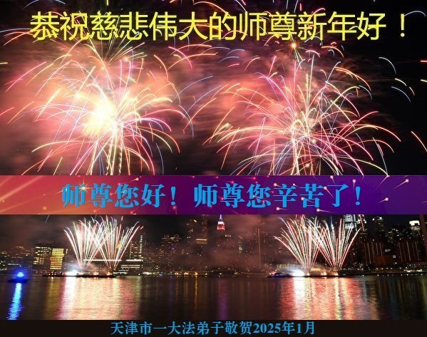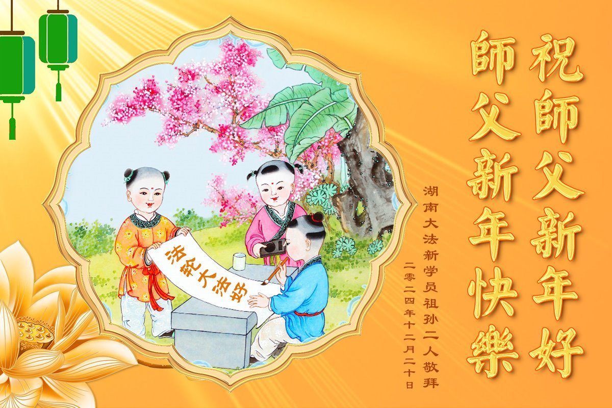 【明慧网二零二四年十二月二十七日】二零二五年新年的钟声即将敲响,明慧网收到来自中国大陆各省市入道得法不久的新学员敬献给李洪志师尊的新年问候。在此法正乾坤的历史时期,能与师尊接上圣缘,众多新大法弟子感到无比幸运,体验到了法轮大法的超常,找到了生命的真谛。新学员感恩师尊的慈悲救度!恭祝师尊新年好!
