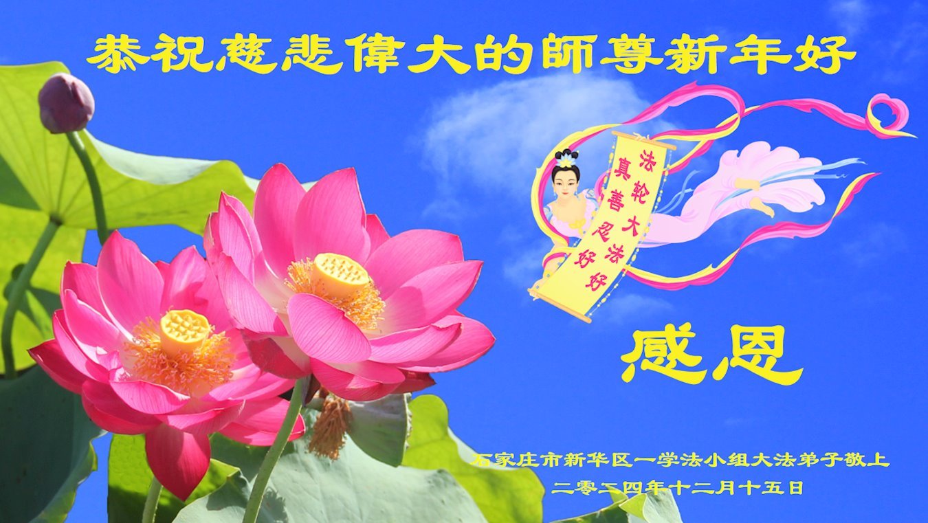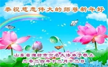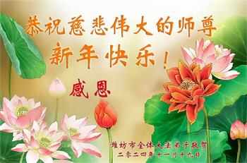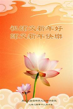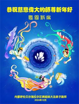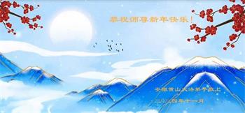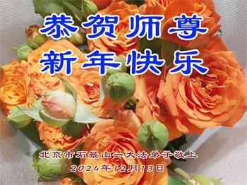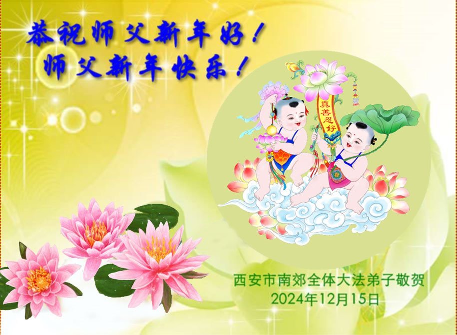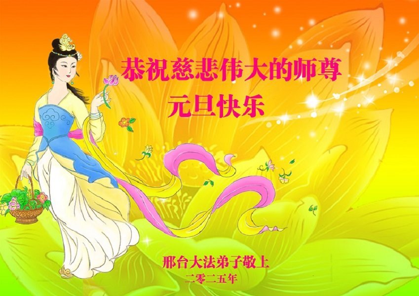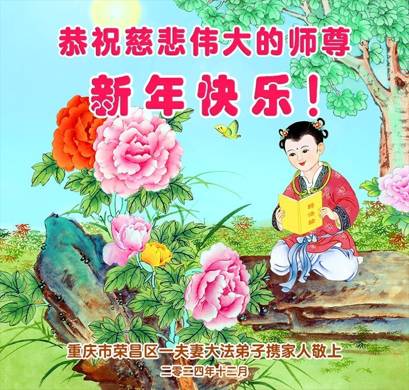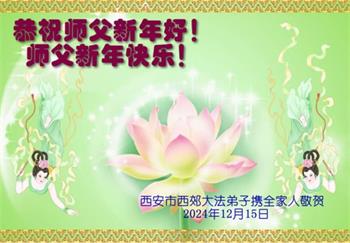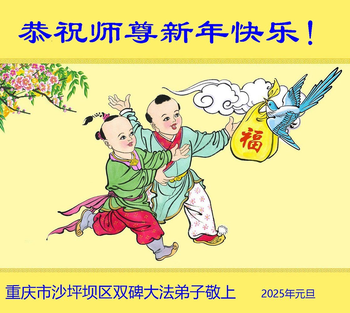 【明慧网二零二四年十二月二十七日】二零二五年新年的钟声即将敲响,明慧网收到来自中国大陆各省市入道得法不久的新学员敬献给李洪志师尊的新年问候。在此法正乾坤的历史时期,能与师尊接上圣缘,众多新大法弟子感到无比幸运,体验到了法轮大法的超常,找到了生命的真谛。新学员感恩师尊的慈悲救度!恭祝师尊新年好!