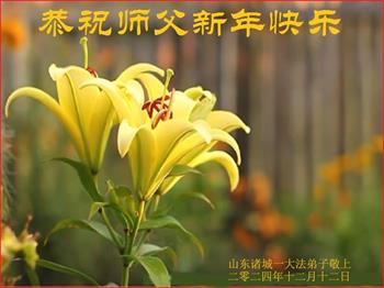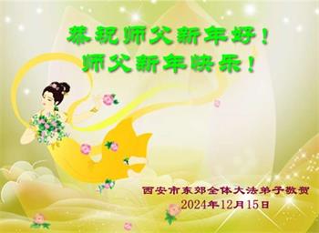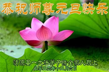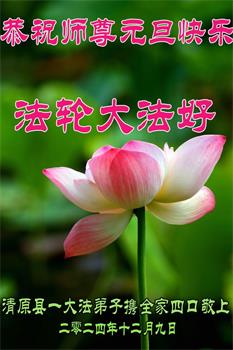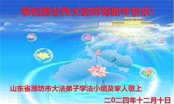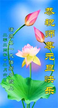 弟子虽然得法较晚,但从小喜欢听家里一老大法弟子在我睡前读法给我听。后来我能自己学习大法,更加感受到大法的神奇,在学法的过程中,感受到自己身体的变化。在此郑重感谢大法师父,感谢大法的慈悲救度,恭贺师父新年快乐!