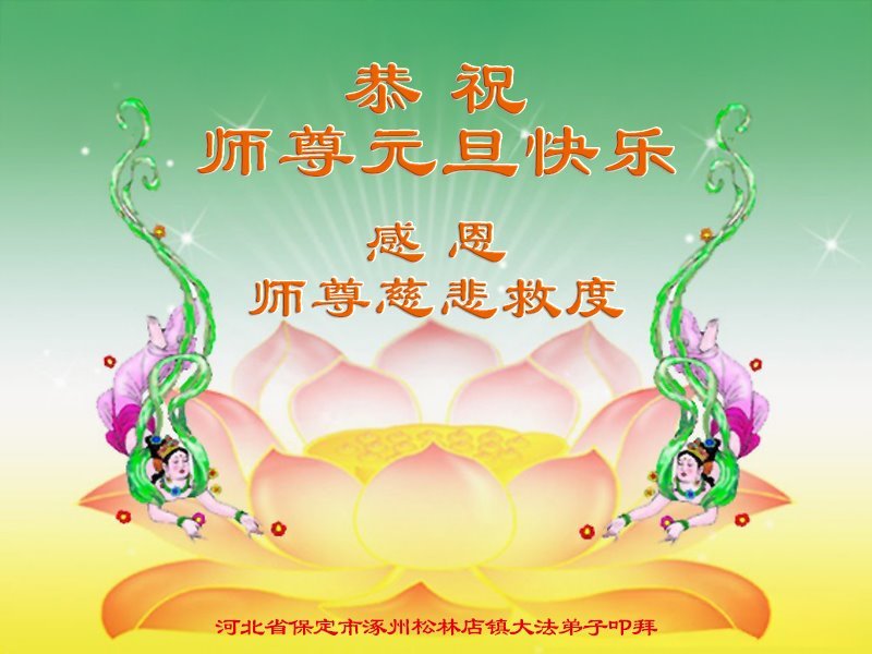恭祝师尊新年快乐!因我家邻居是大法弟子,他们年轻、乐观、仁爱、慈祥、善良,引起我的关注,我看了天书《转法轮》,如梦初醒,明白了人生的意义,这是我一生寻找的答案,我要修炼。