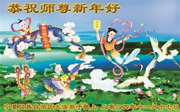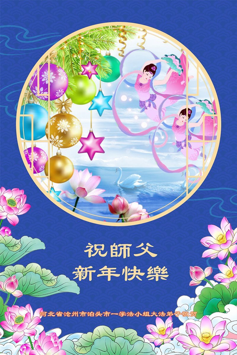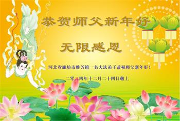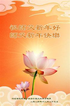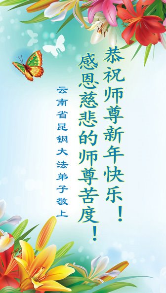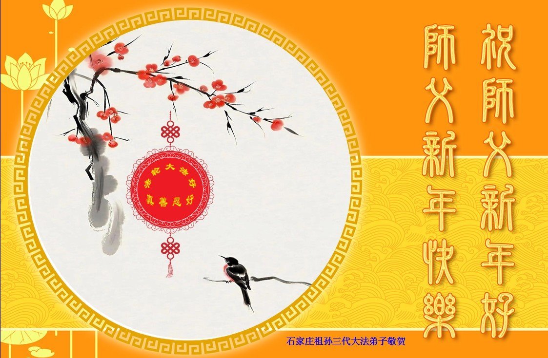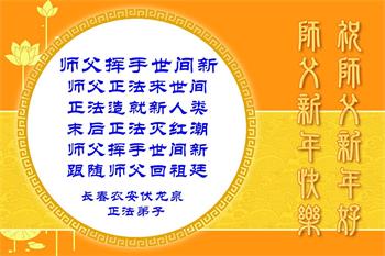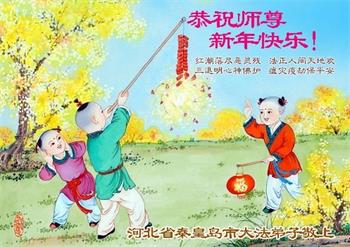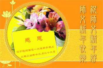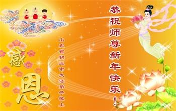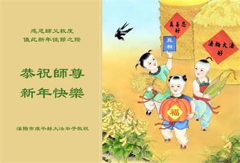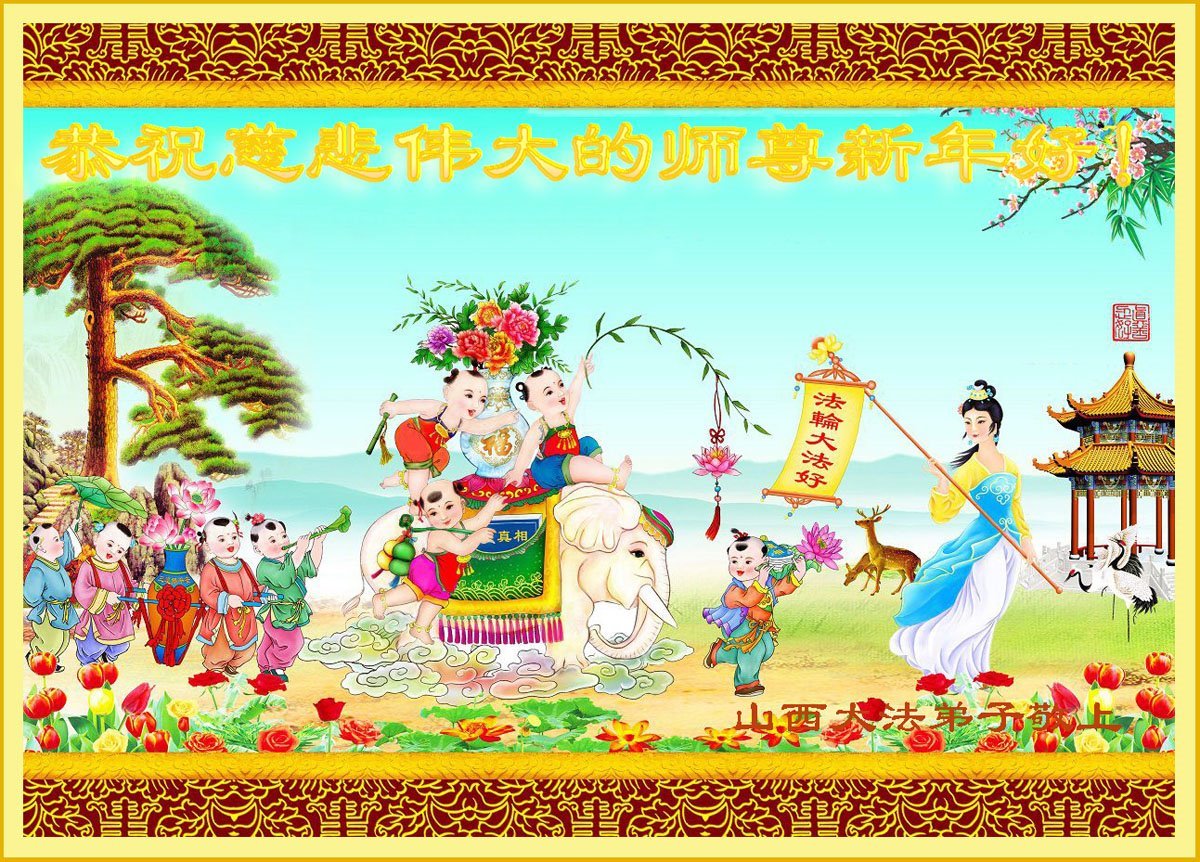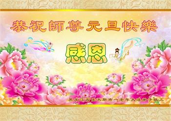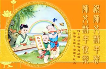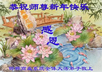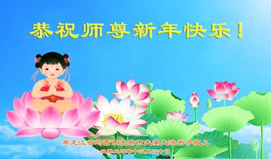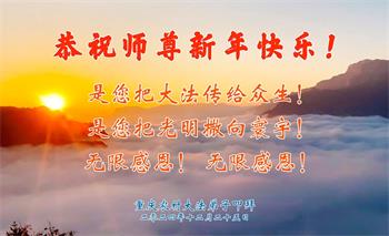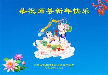 明慧网收到了来自中国大陆航空航天、外贸、农业、矿业、科研、电力、金融、教育、医疗卫生、邮政、重型机械、水利、铁路、纺织、粮食、商业、农垦农场、供销社、音乐界、新闻界、服务行业、疾病预防控制、油田、会计师行业、林业、石化、律师行业、税务、丝绸行业、机械维修行业、环境艺术、燃气行业、电商行、财政、建筑行业、建材行业、医药、能源行业、桥梁行业、船舶行业、化纤行业、游乐行业、网通行业、医务界、环卫、原工业系统、银行、检察系统、统计、出版行业、政府机构、地勘、文艺、海关、煤业、保险行业、制药行业、文卫、石油化工、汽车制造、民用生产行业、公、检、法、司、军队系统等六十多个行业的大法弟子们敬致师尊的新年问候。以下为其中部份贺词贺卡: