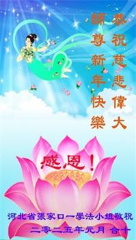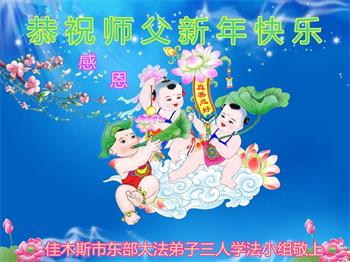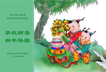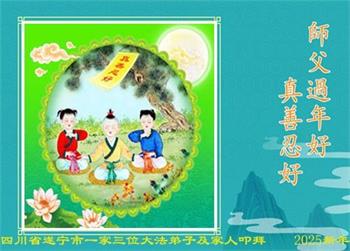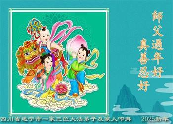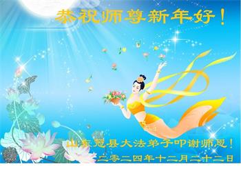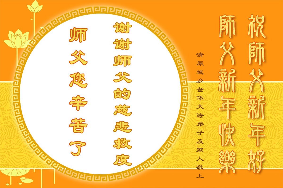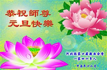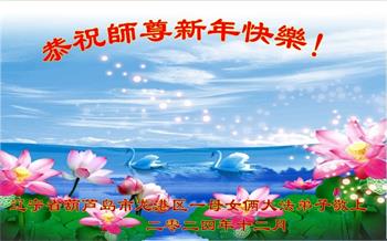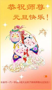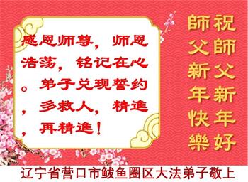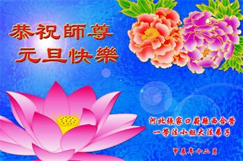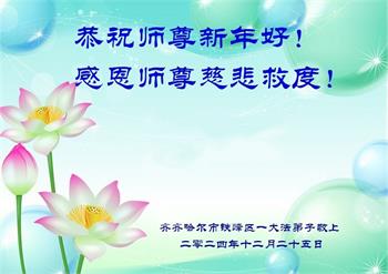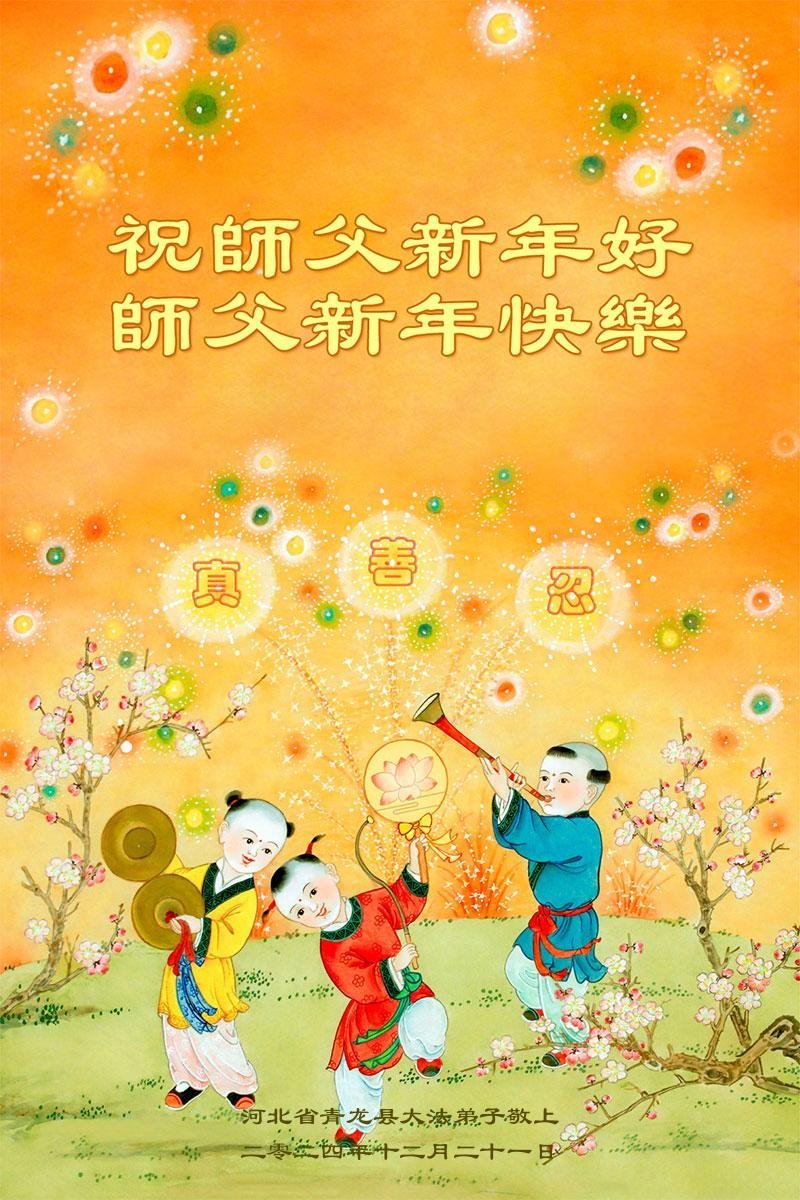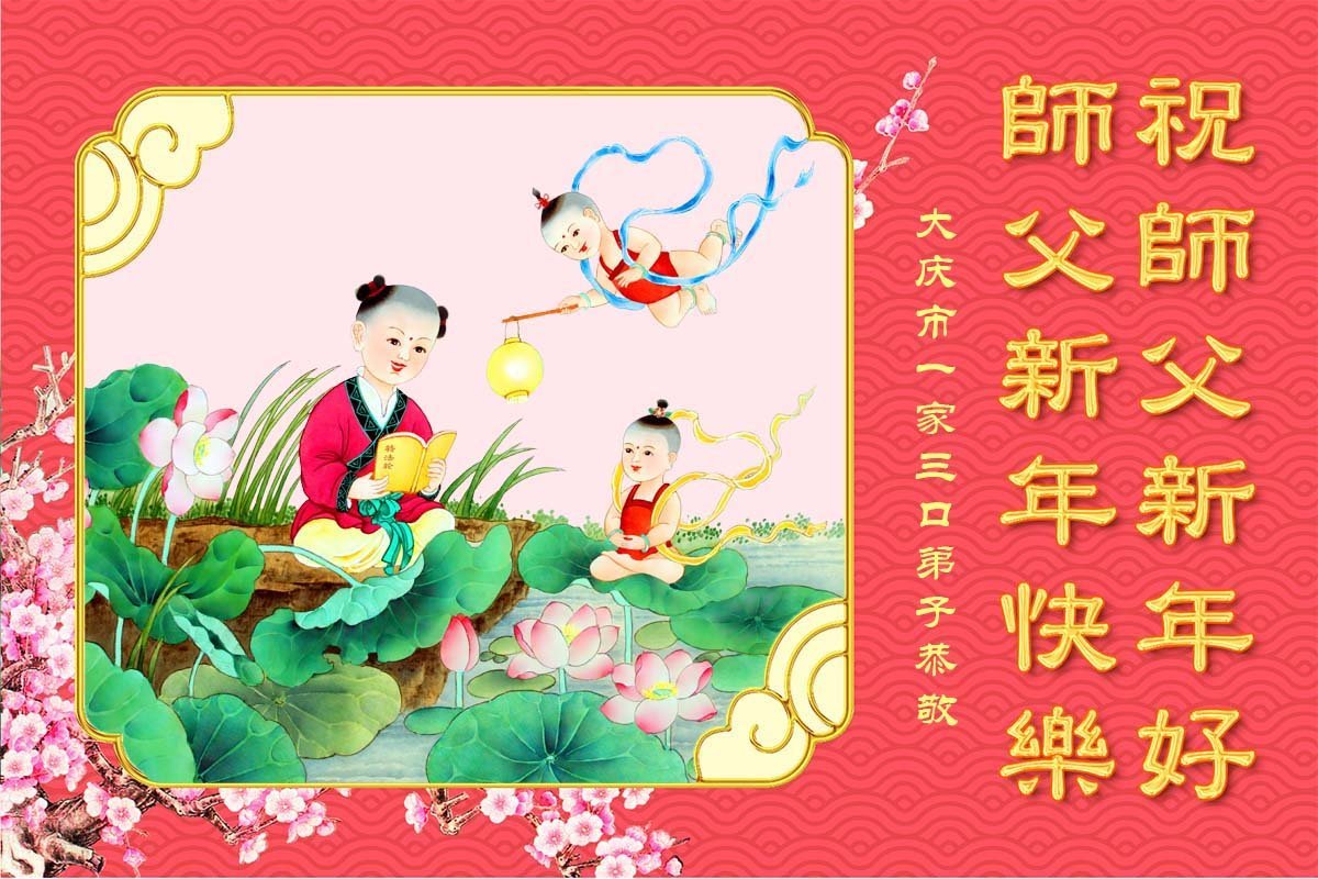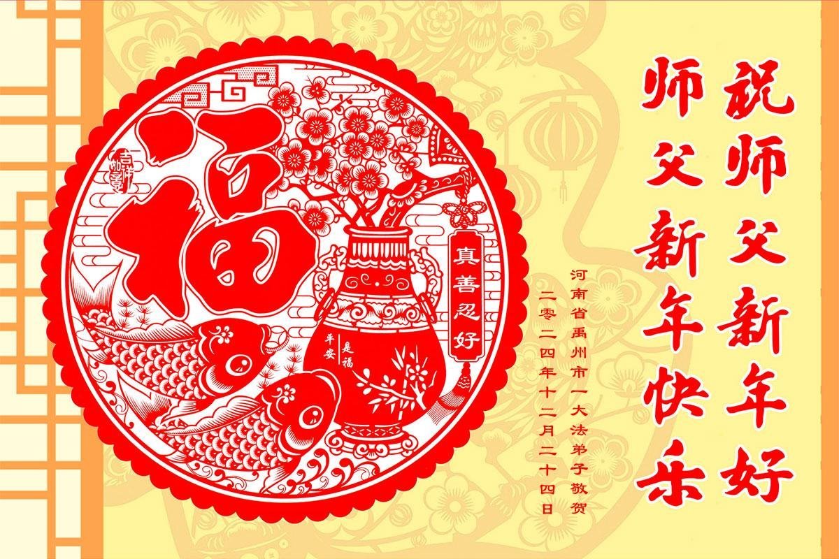 明慧网收到了来自中国大陆航空航天、外贸、农业、矿业、科研、电力、金融、教育、医疗卫生、邮政、重型机械、水利、铁路、纺织、粮食、商业、农垦农场、供销社、音乐界、新闻界、服务行业、疾病预防控制、油田、会计师行业、林业、石化、律师行业、税务、丝绸行业、机械维修行业、环境艺术、燃气行业、电商行、财政、建筑行业、建材行业、医药、能源行业、桥梁行业、船舶行业、化纤行业、游乐行业、网通行业、医务界、环卫、原工业系统、银行、检察系统、统计、出版行业、政府机构、地勘、文艺、海关、煤业、保险行业、制药行业、文卫、石油化工、汽车制造、民用生产行业、公、检、法、司、军队系统等六十多个行业的大法弟子们敬致师尊的新年问候。以下为其中部份贺词贺卡: