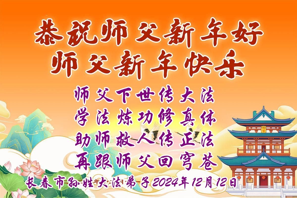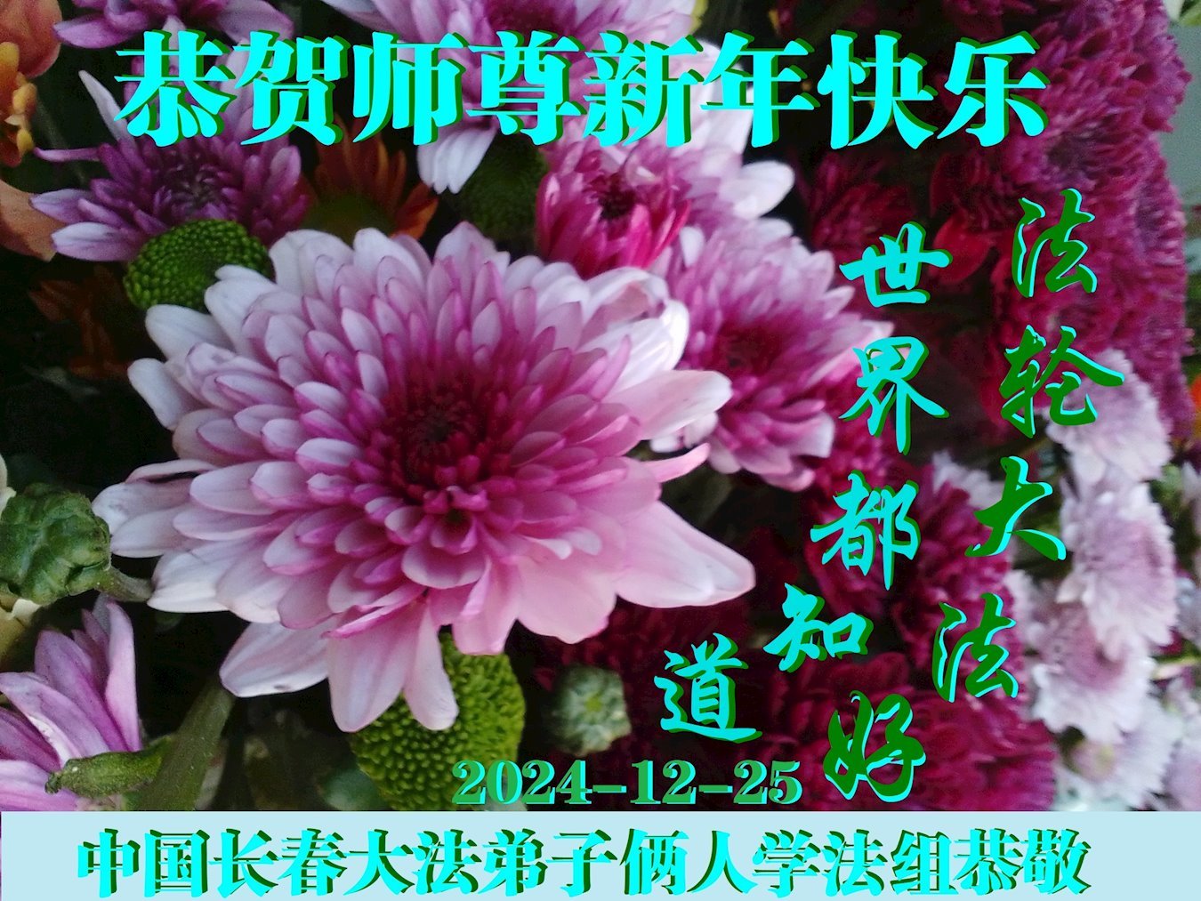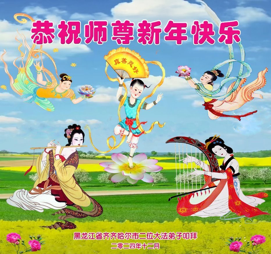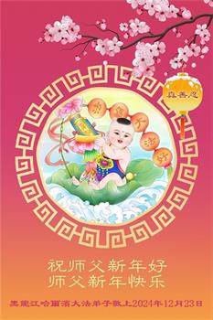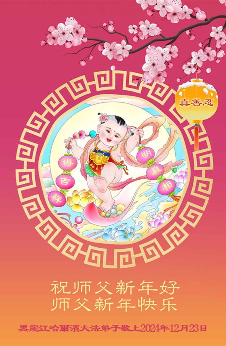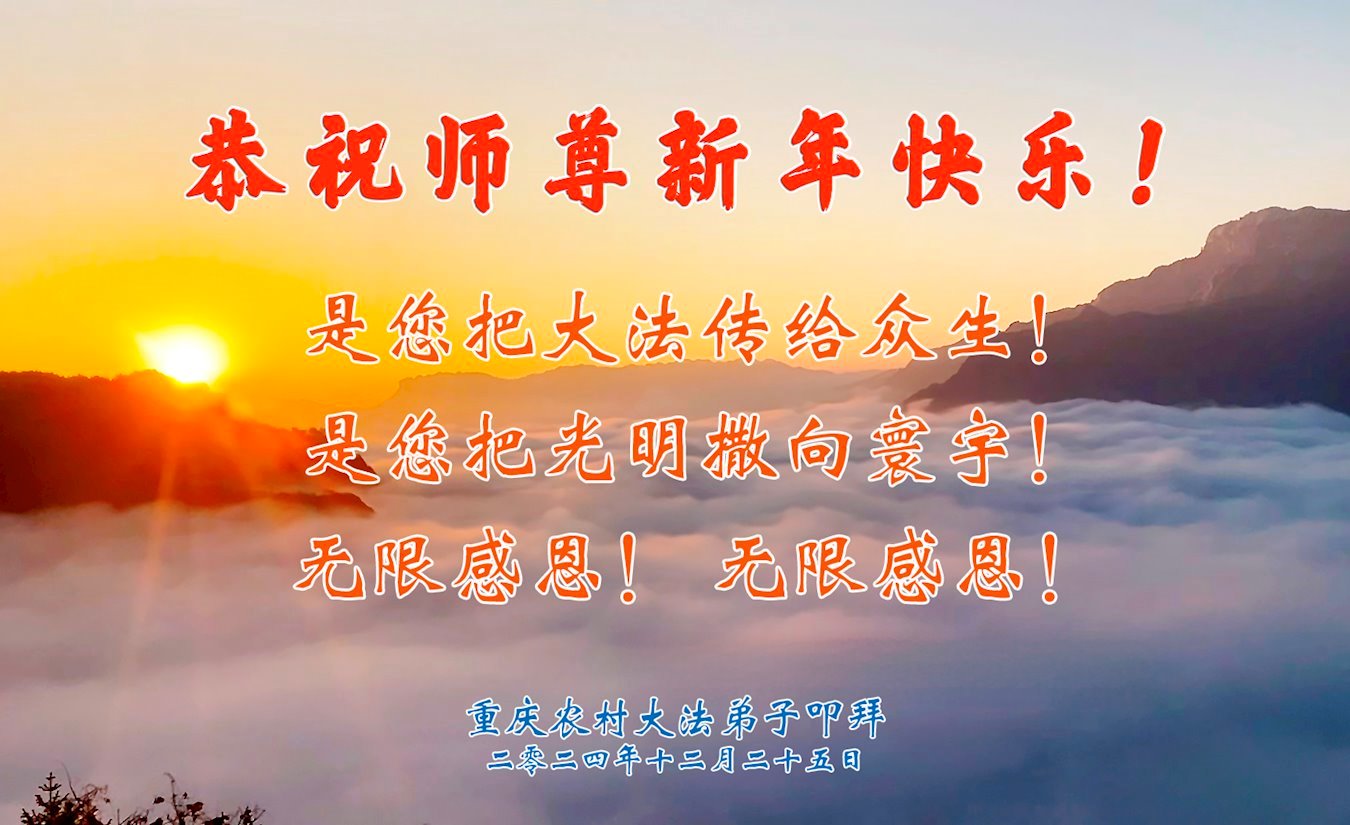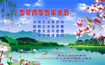 【明慧网二零二四年十二月二十九日】(明慧网记者综合报道)二零二五年新年在即,在这宇宙正法渐入法正人间之时,中国大陆各行各业的大法弟子们恭祝师尊新年好!法轮大法洪传于世三十二载,在恩师慈悲的救度和指引之下,大法弟子们如傲雪寒梅竞相开放,更加成熟与理性,各行业各阶层的大法弟子们都在随师救度众生,兑现誓约。