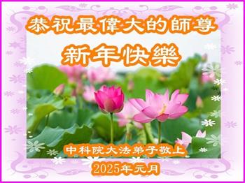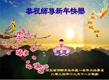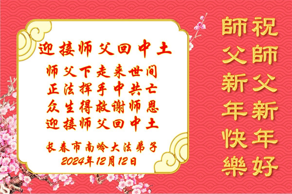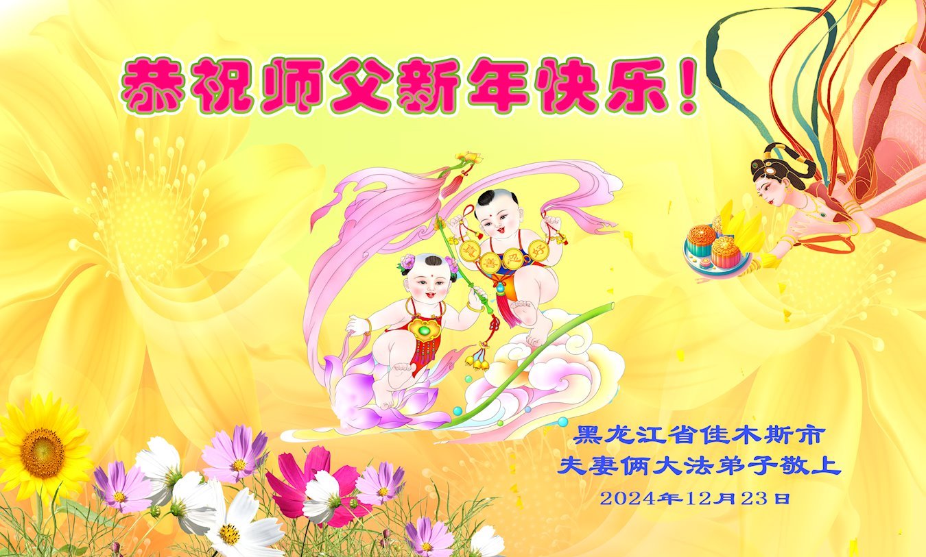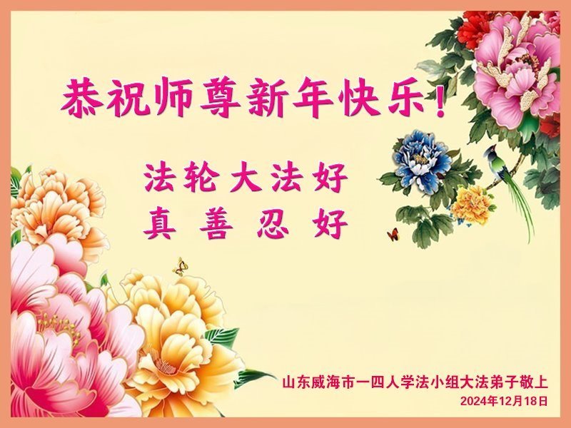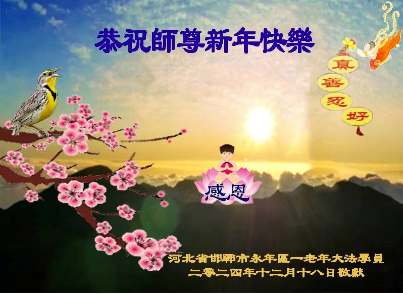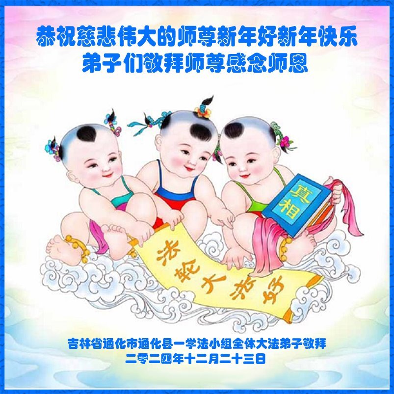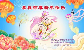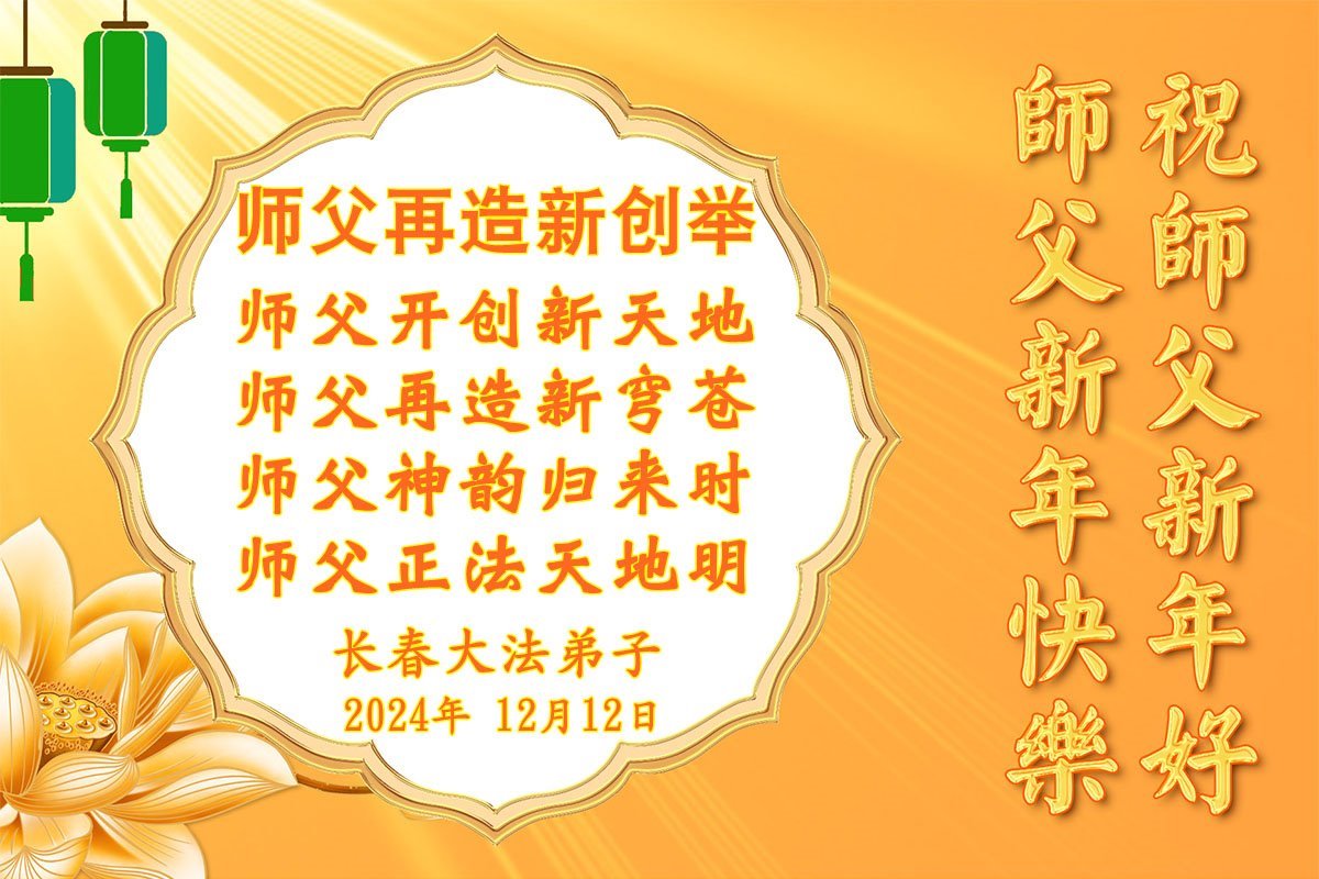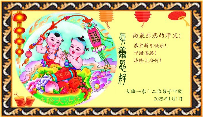 【明慧网二零二四年十二月二十九日】(明慧网记者综合报道)二零二五年新年在即,在这宇宙正法渐入法正人间之时,中国大陆各行各业的大法弟子们恭祝师尊新年好!法轮大法洪传于世三十二载,在恩师慈悲的救度和指引之下,大法弟子们如傲雪寒梅竞相开放,更加成熟与理性,各行业各阶层的大法弟子们都在随师救度众生,兑现誓约。