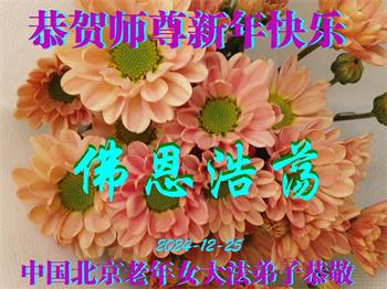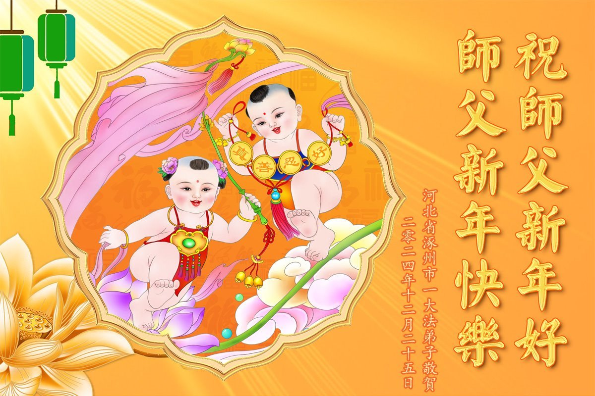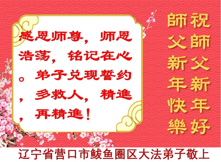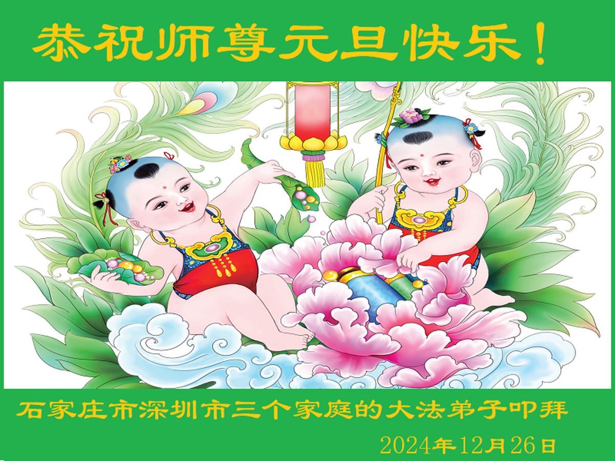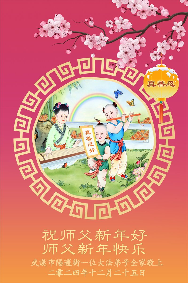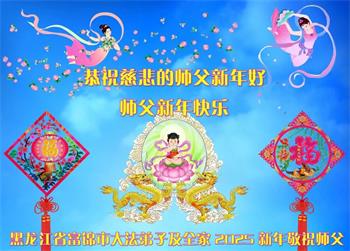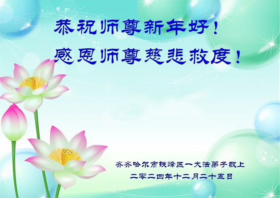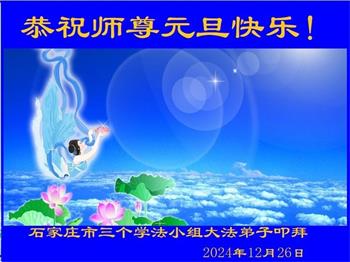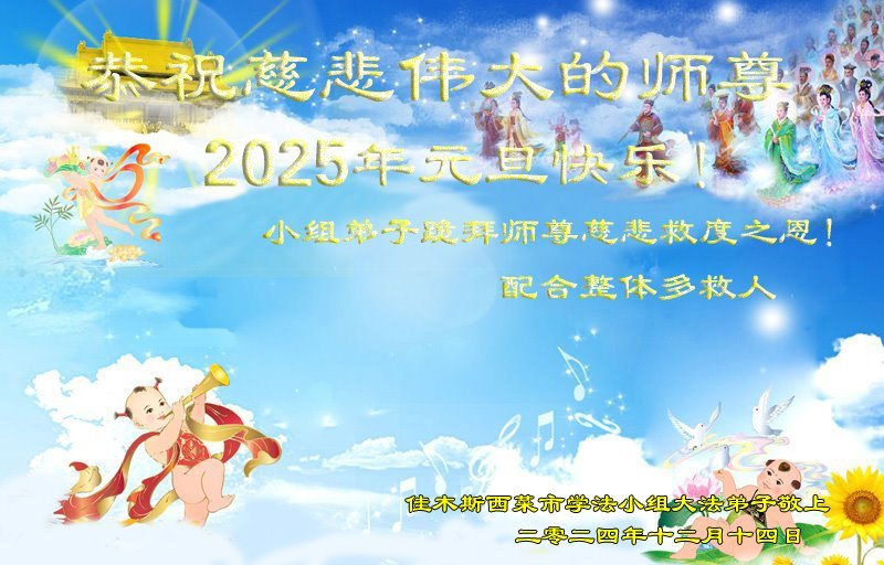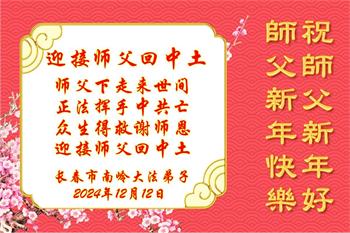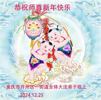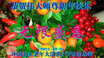【明慧网二零二四年十二月二十九日】(明慧网记者综合报道)二零二五年新年在即,在这宇宙正法渐入法正人间之时,中国大陆各行各业的大法弟子们恭祝师尊新年好!法轮大法洪传于世三十二载,在恩师慈悲的救度和指引之下,大法弟子们如傲雪寒梅竞相开放,更加成熟与理性,各行业各阶层的大法弟子们都在随师救度众生,兑现誓约。