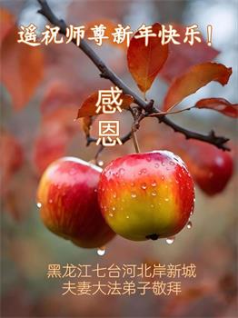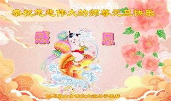 谢谢师父将珍贵的宇宙大法传给弟子,使弟子明白了来在人世间的意义。今生得遇大法,在伟大的法轮佛法中修炼,真幸福啊!感恩师父的慈悲苦度!