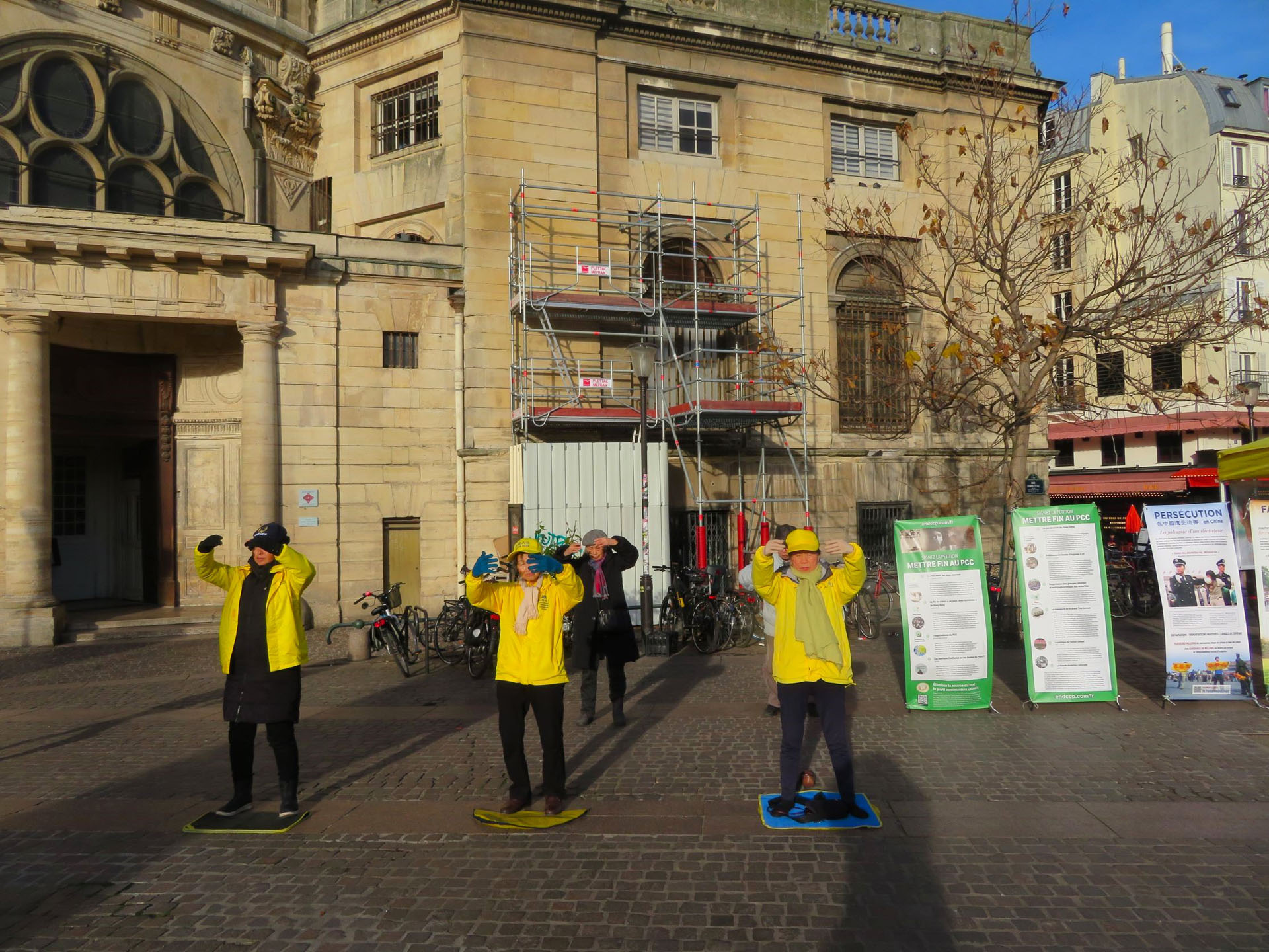 ![]() 图1~5:在巴黎市中心夏特莱(Châtelet)街区,法轮功学员演示法轮功功法,向游客和民众介绍法轮功及中共迫害法轮功的真相。 |