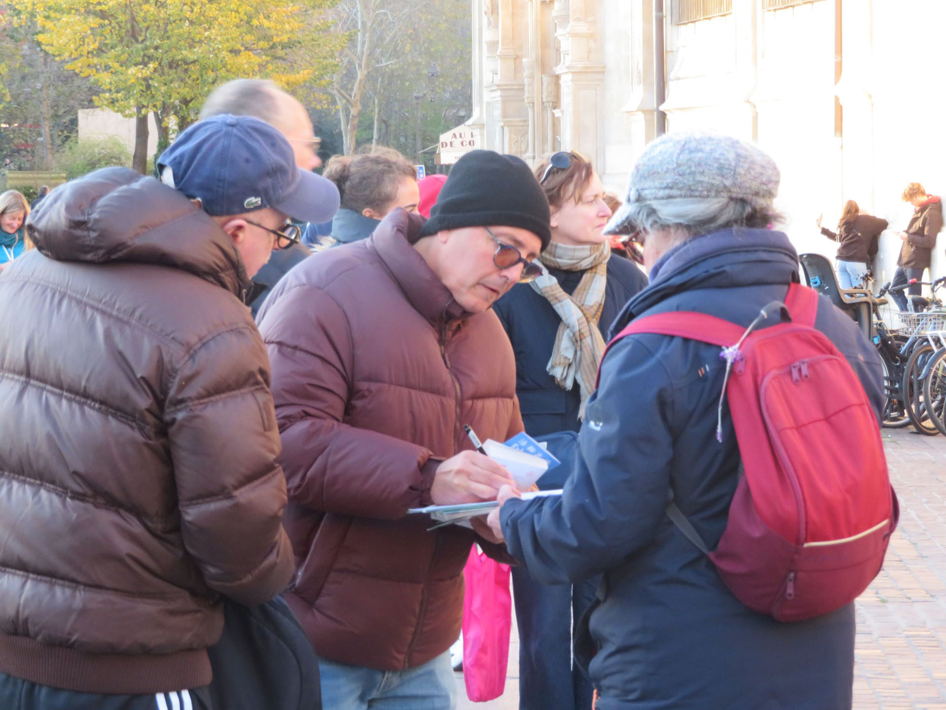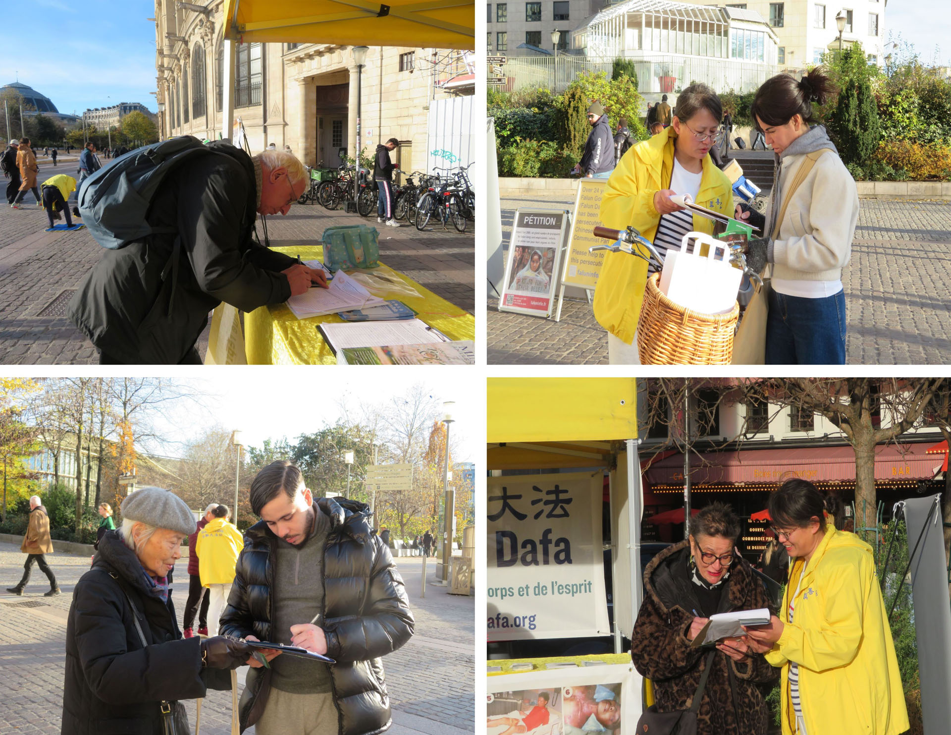 勒内・卡尔丰(RenéKalfon)曾经在政治庇护申请者的接待中心工作,现已退休。他了解中共迫害法轮功和活摘器官的事实。他主动在征签表上签名,他拿了《明慧周报》等法轮功真相资料,他说:“我反对那些极权国家,他们阻止法轮功学员、维吾尔族、藏族等少数民族修炼。我认为中共应改善其政策。这样不行……这实在不正常。”