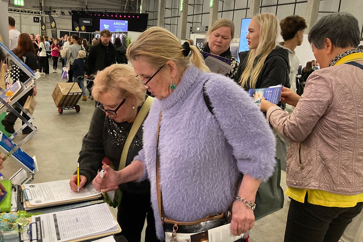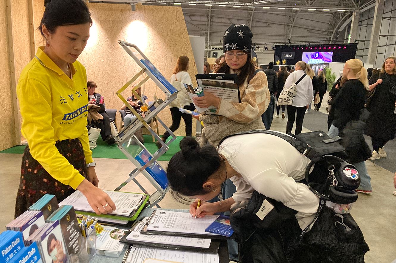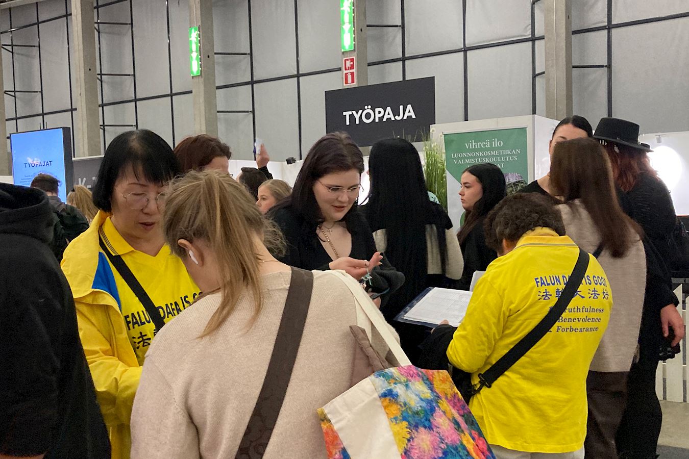 【明慧网二零二四年十二月六日】二零二四年十一月二十九日至十二月一日,芬兰法轮功学员参加了“我爱我”的展会(I Love Me Messu)。这次展会以美容、健康和时尚为主题,在赫尔辛基会长中心举办,博览会吸引了四百家参展商,参观人数多达六万名。