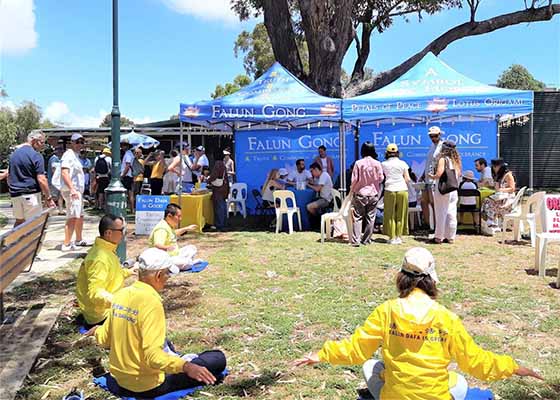 乔治街节12月1日在西澳珀斯东弗里曼特尔举行。当地法轮功学员设立了展位,传递法轮大法的真相与真善忍的美好,受到人们的欢迎。