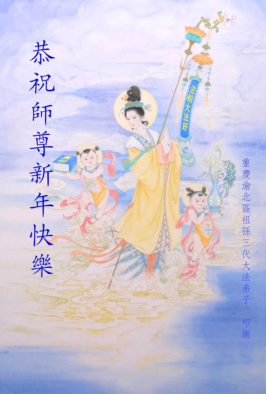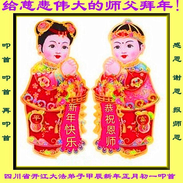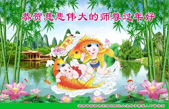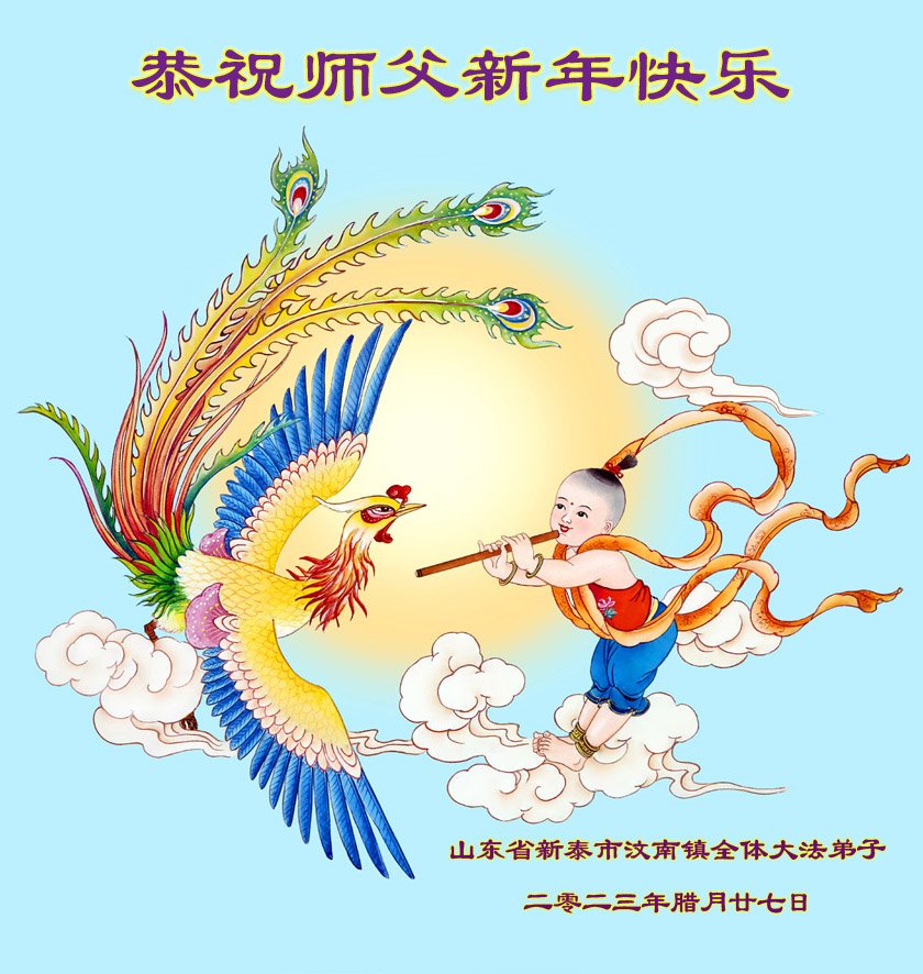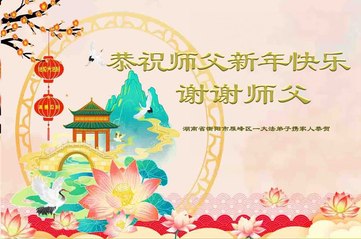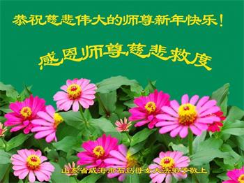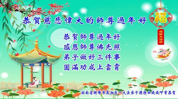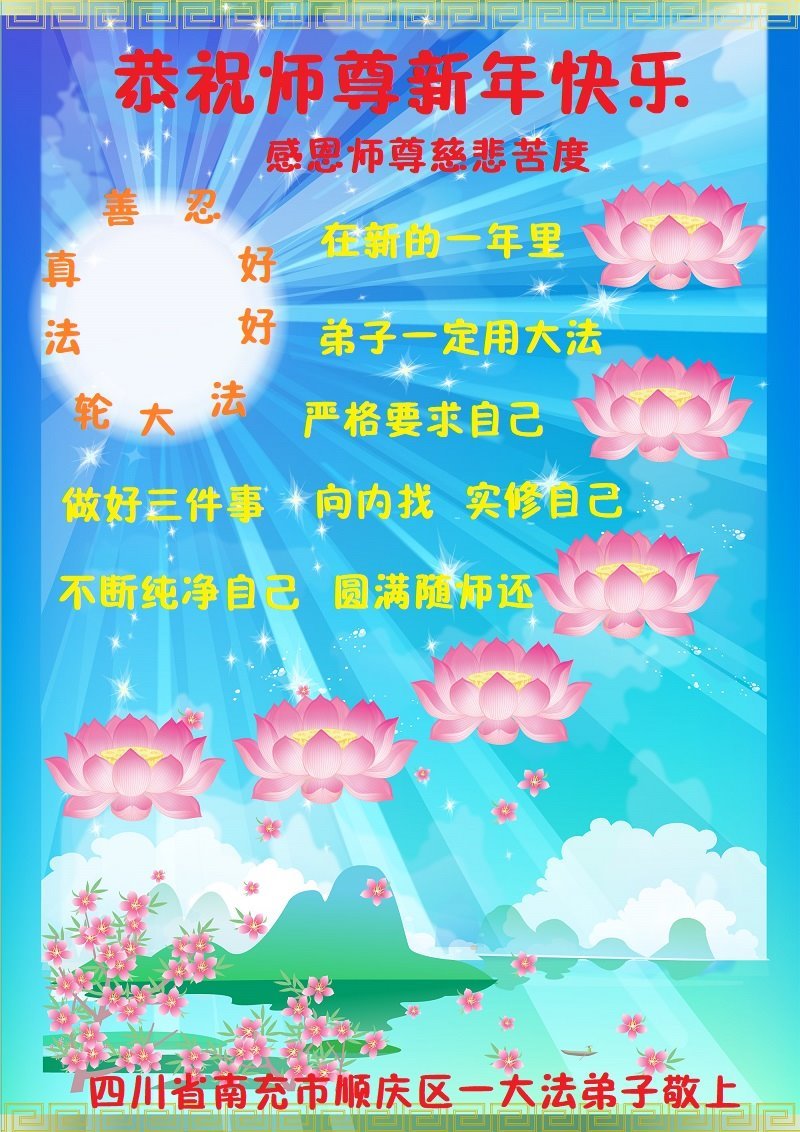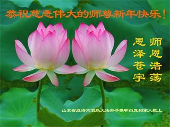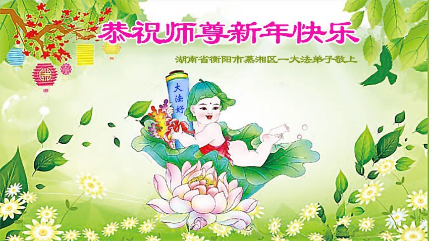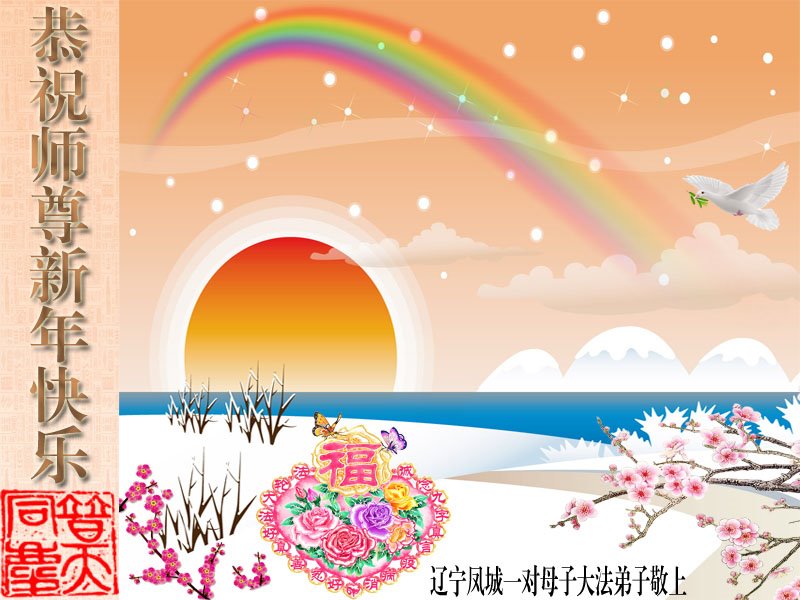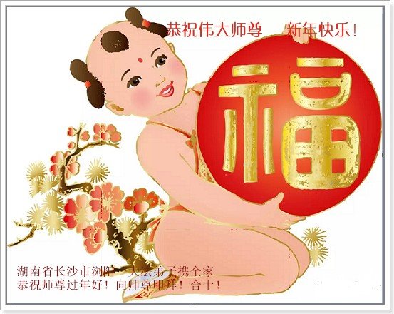 恭祝尊敬的师父新年快乐!希望我们能够提高心性和升华,帮助师父救度众生。