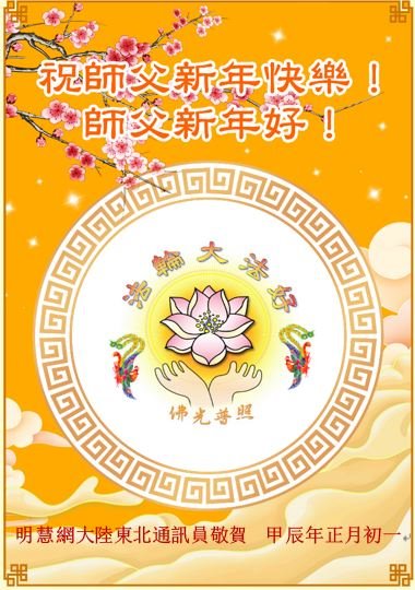 【明慧网二零二四年二月十三日】(明慧网记者综合报道)随着师尊正法洪势的推進,更多的众生在觉醒。尽管走向末路的中共还在迫害法轮功,也挡不住明白真相、有缘的民众入道得法,走上返本归真之路。二零二四年过年期间,华北、东北、华东、中南、西南等中国各地区新入门的法轮大法学员诚敬的给李洪志师尊拜年!感谢师尊救度!