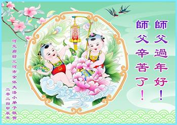 在正月初二发表的一则《中国各地学法小组大法弟子遥拜师父过年好》组合中,河北省邢台市平乡县一学法小组大法弟子在贺词中说:“师父您好!在您的看护下,在风风雨雨中,我们的学法小组稳健的走过了十几个年头。同修们在这个环境中,有争执、有摩擦、有鼓励,有悲伤,也有欢乐,更主要的是一个个提高后的喜悦,无不体现着师父的慈悲和大法的神奇!我们真心希望,在这个邪恶迫害的环境下,我们的这个学法小组会以更加精進的修炼状态,做好自己该做的三件事,迎接师父回国!”