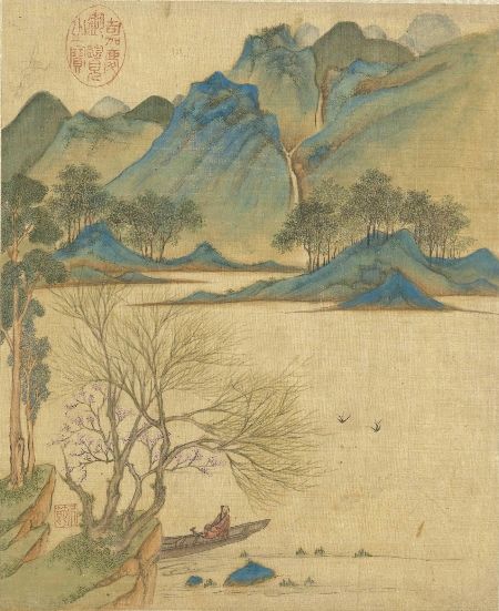 ![]() 明 居节绘《山水册之江南新雨》局部。(公有领域) |