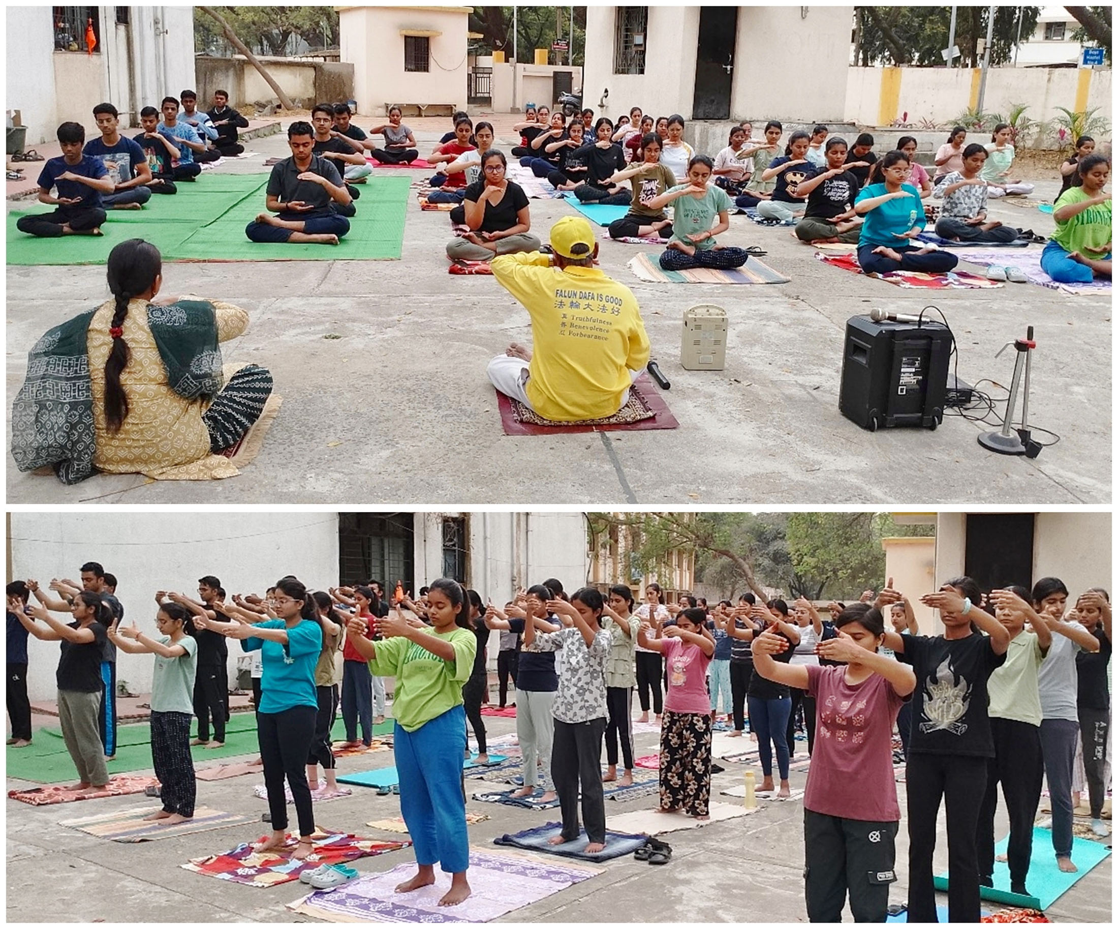 这一天,修炼法轮大法的助理教授施韦塔・索瓦内(Shweta Sonwane)博士邀请了当地学员向学生们介绍法轮大法修炼方法。不少学生参加了这次活动,其中大部分是一年级新生。这些年轻的学生对学习法轮大法舒缓的功法表现出浓厚的兴趣,并表示炼完功后感到平和、充满能量。